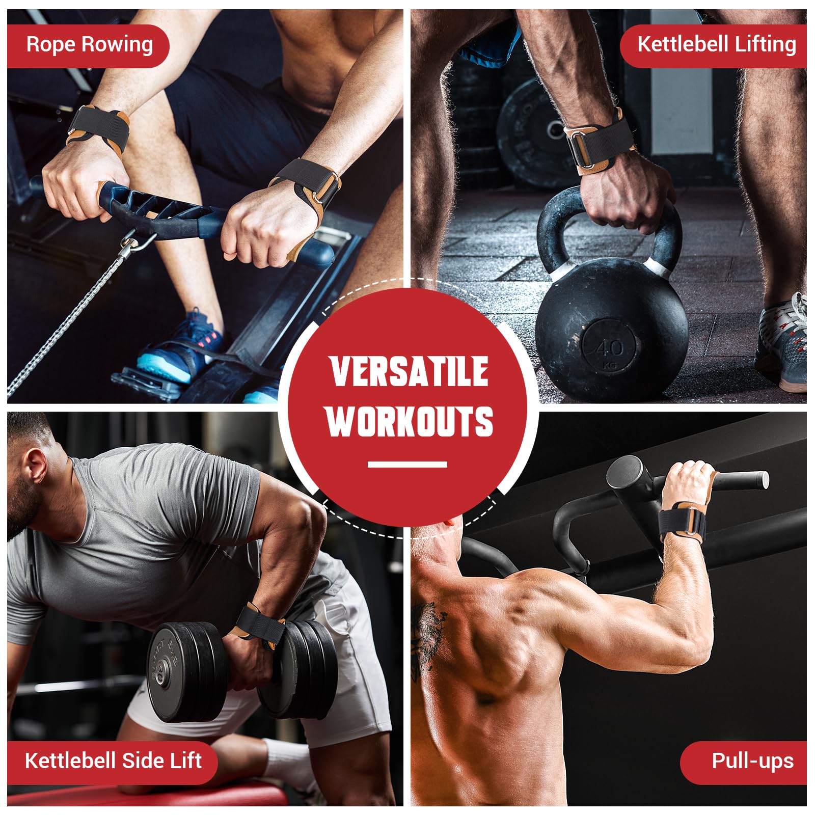 - Perfect fitness partner: Wrist workout straps are great for weightlifting, strength training, bodybuilding, pull-ups, hard pulls, shrugs, barbell rowing and upright rowing. Not only is the cow suede sweat-wicking and non-slip, but it is also constructed to last and resist up to 480 lbs without tearing. The wrist straps weighs only 0.5 pounds, so you can carry it with you, using it at home, in the gym or in the outdoors.