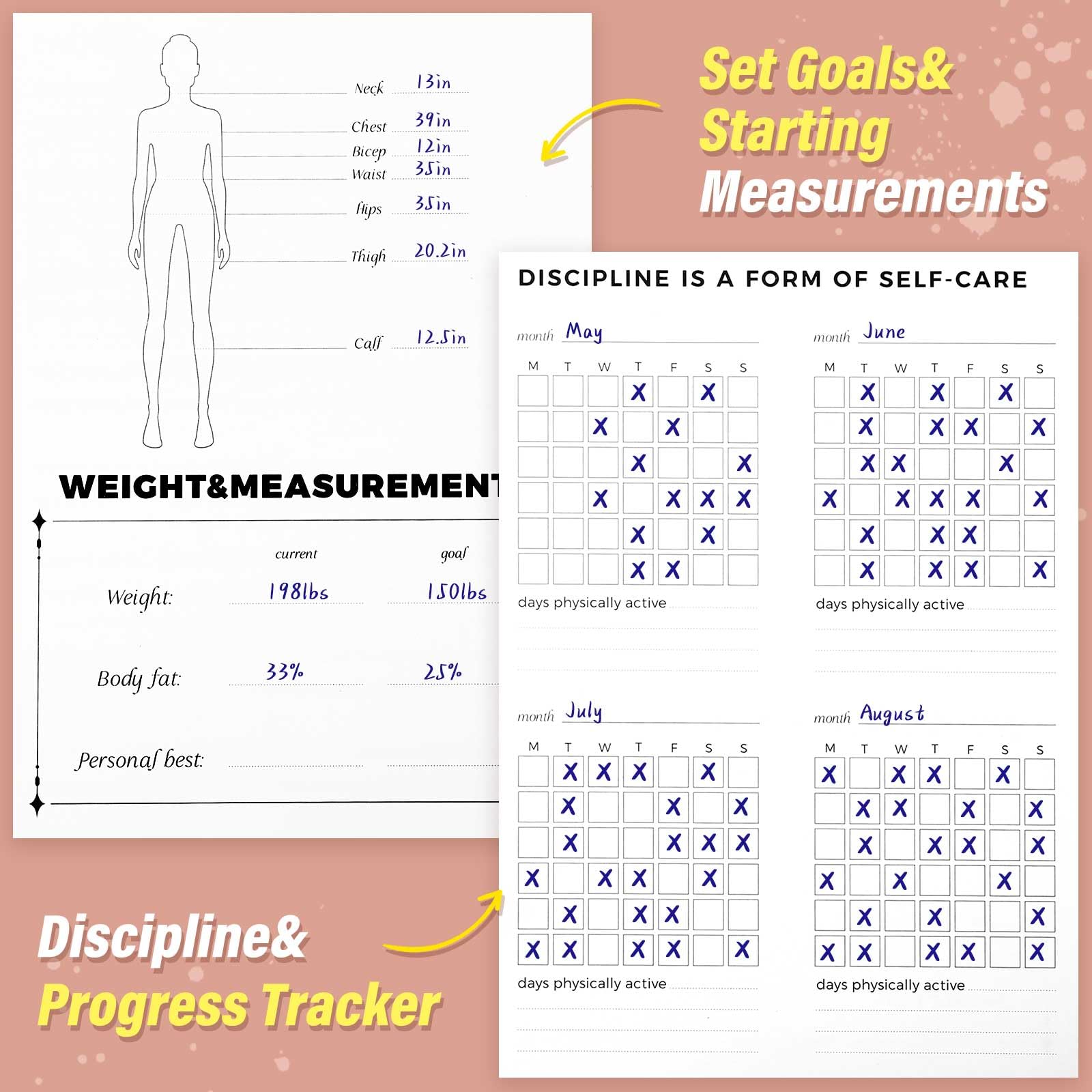 - Best Gift - It is the perfect companion for their fitness journey that with high quality material, fashionable design and practical function. Support them never give up and finish the wellness goal with this fitness journal as a special gift.