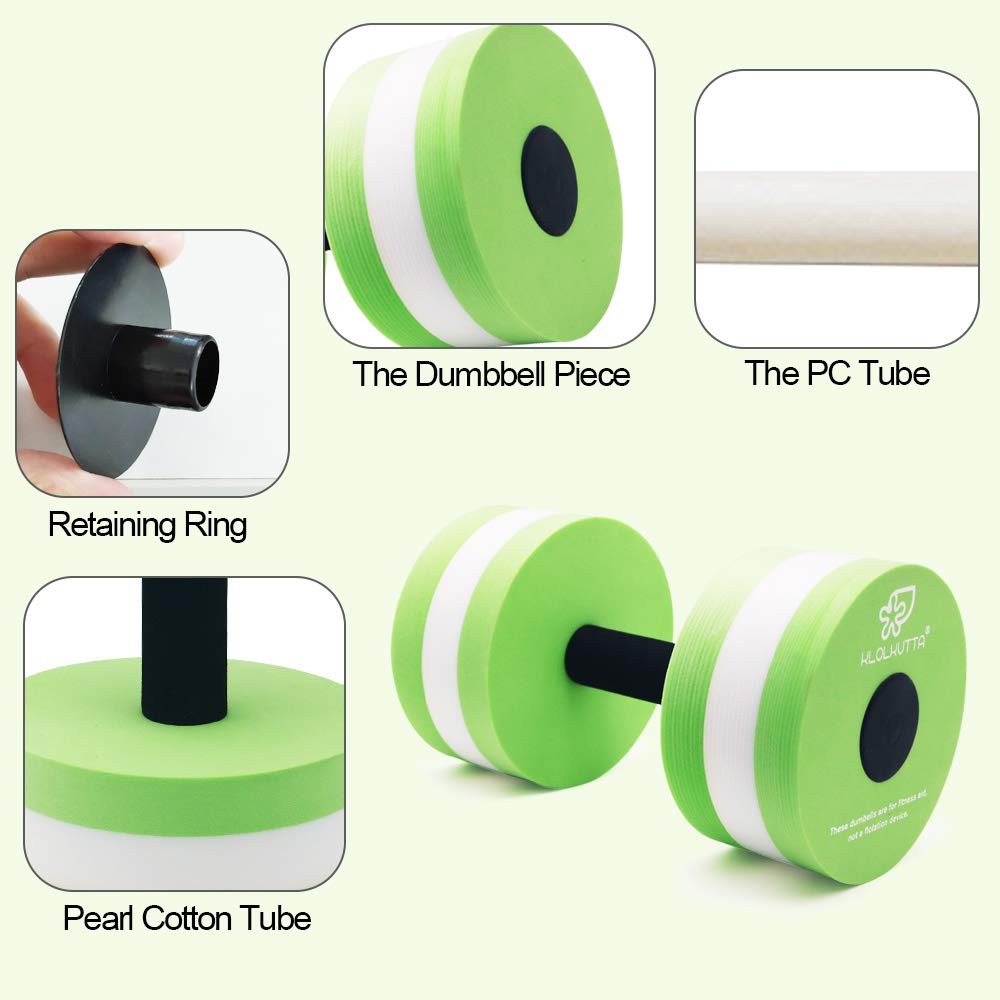 - ENVIRONMENTAL FOAM & COMFORTABLE GRIP - KLOLKUTTA aquatic dumbells are made of high quality EVA material, tasteless and waterproof, safe and environmental protection,the resistance of the barbells will provide an overall workout for your upper body, lower back and other parts.