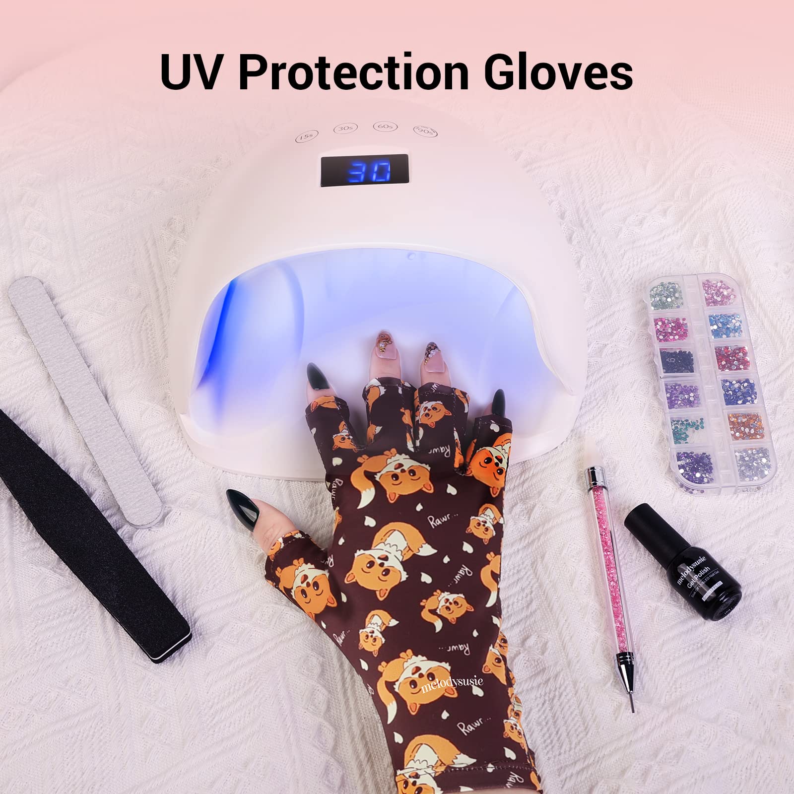 - 【Comfortable Material】Our UV shield glove is made of soft LYCRA fabric with 85% Nylon 15% Spandex, comfortable and breathable which has moisture transfer technology that transports the heat and sweat to drier areas-away from the skin to the exterior of the gloves where it can evaporate more efficiently. So that you will not feel sultry during a manicure.