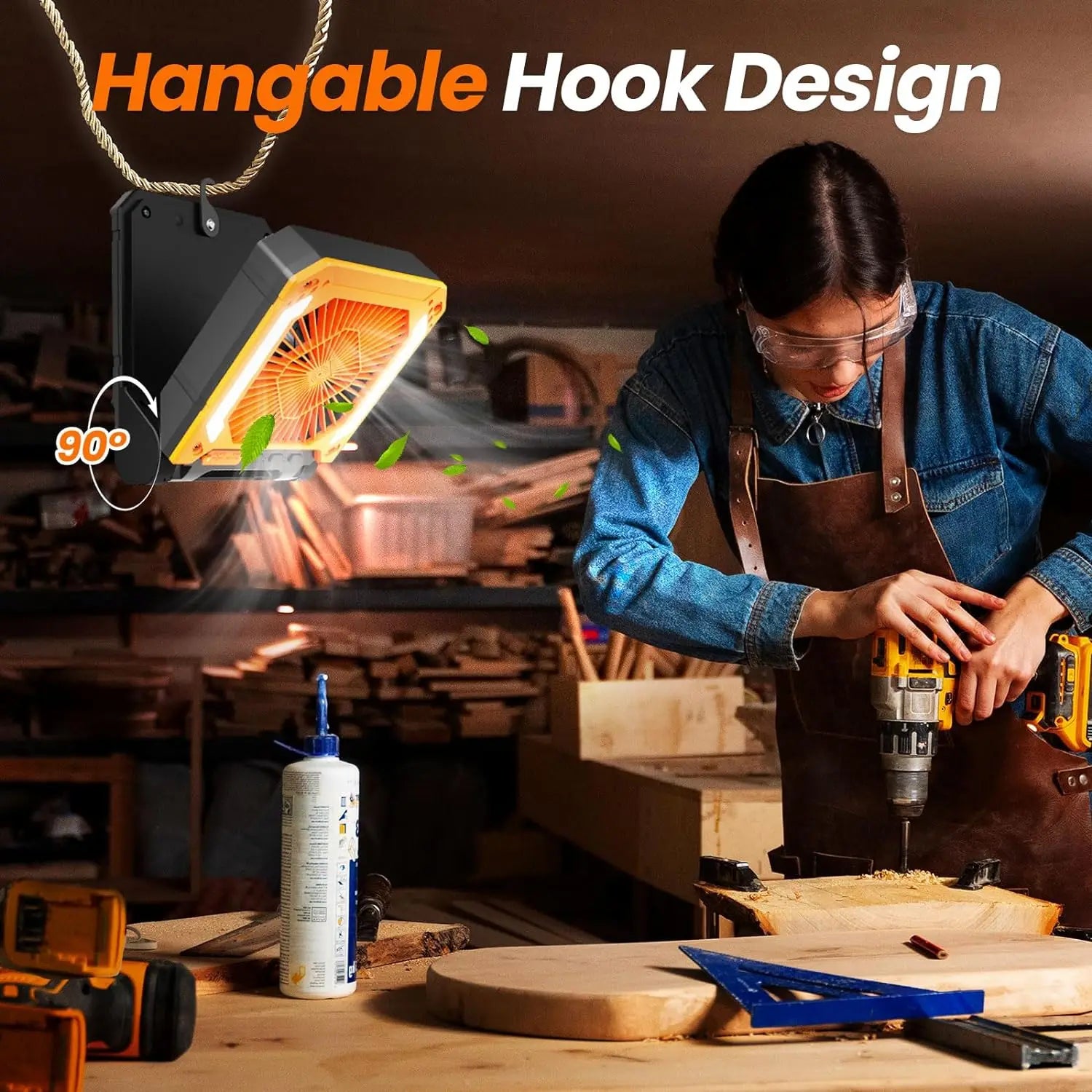 3.【Super-bright Lantern Light】The rechargeable desk fan features a daylight lamp with multiple settings (low, high). Ensuring you're never left in the dark. Perfect for bedroom chilling, office, camping, barbecue or power outrages, etc.