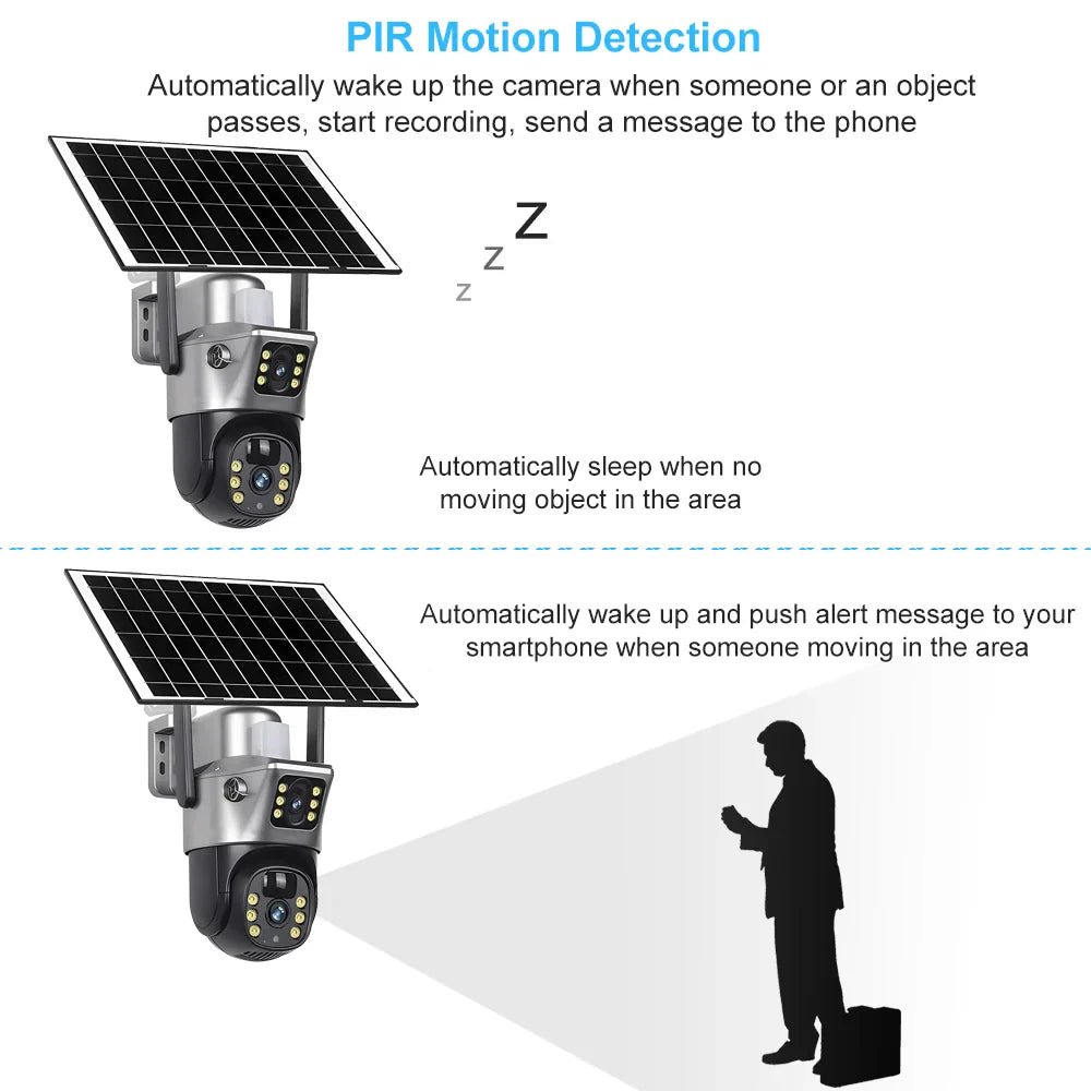 The camera can be detached with a large capacity battery, And solar panel is converted into energy by absorption and heat absorption to power the battery without connecting, the power supply easy to navigate.