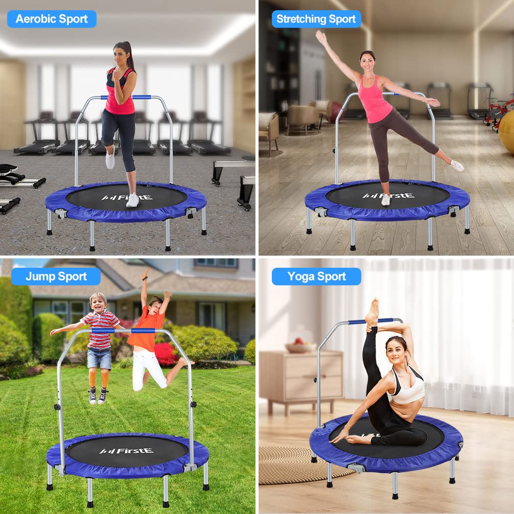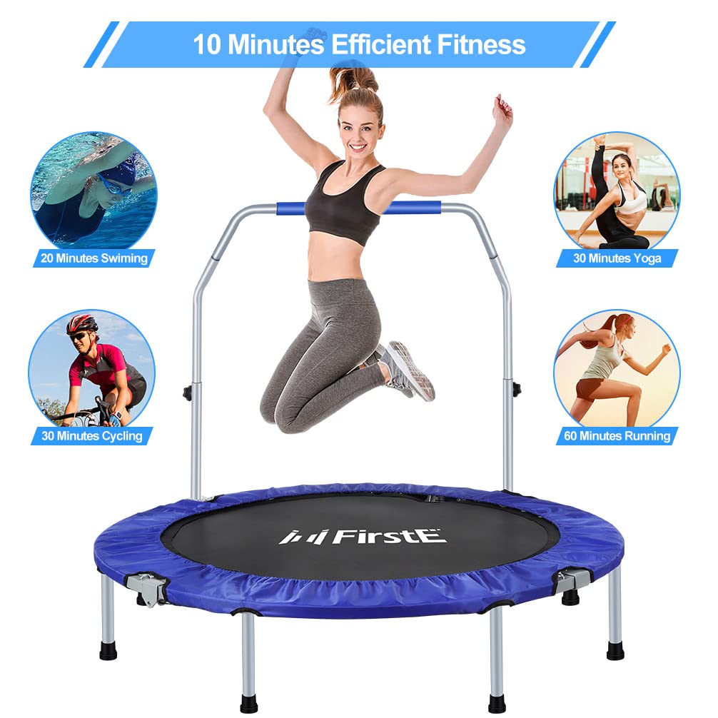 Details: FirstE 50' Foldable Fitness rebounder for adults indoor garden workout,mini trampoline for kids bounce jumping fun.