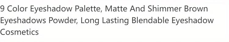 Discover the versatility of our 9-Color Brown Eyeshadow Palette. With an array of rich and earthy tones, this palette is perfect for achieving both natural and dramatic eye looks. The highly pigmented formula ensures long-lasting wear while providing a smooth and crease-free application. Elevate your eyeshadow game with this must-have palette.