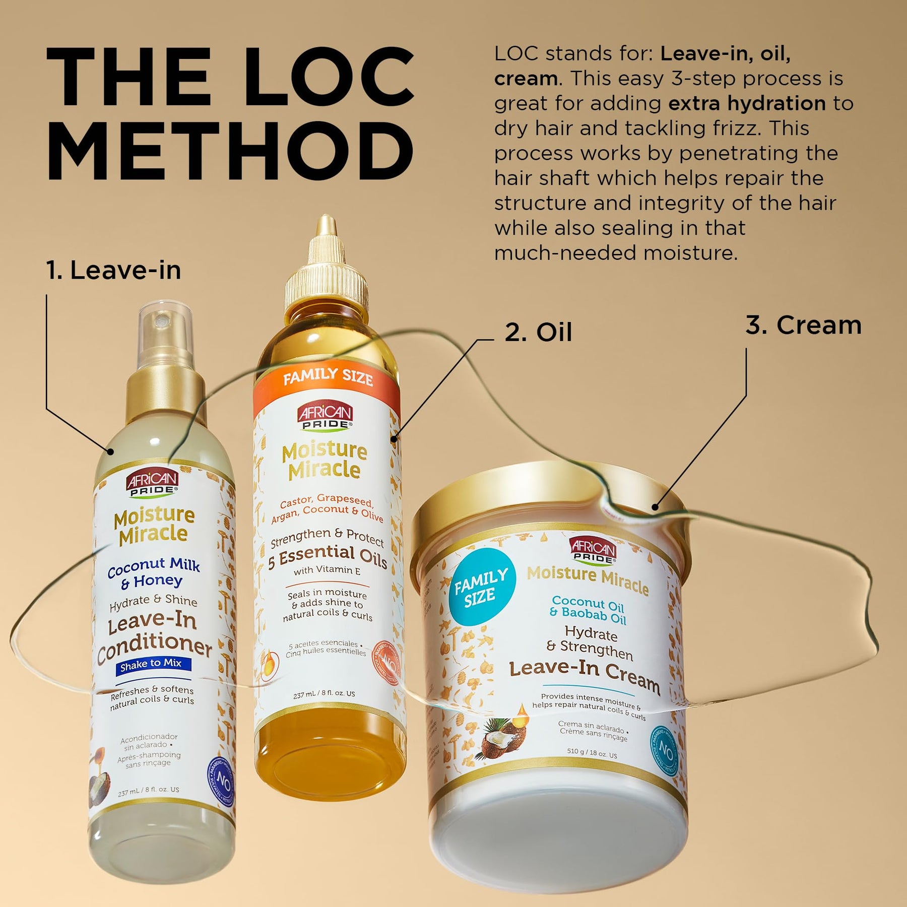 - ๐๐ถ๐ด๐ต๐๐๐ฒ๐ถ๐ด๐ต๐ ๐ ๐ผ๐ถ๐๐๐๐ฟ๐ฒ & ๐ฆ๐ฐ๐ฎ๐น๐ฝ ๐๐ฎ๐ฟ๐ฒ โ The restoring African Pride Moisture Miracle 5 Essential Oils treatment moisturizes the hair & scalp using a nourishing blend of essential oils & Vitamin E to replenish natural nutrients, prevent breakage & promote natural growth.