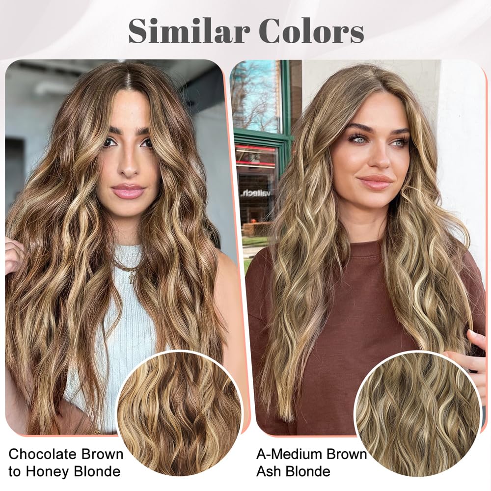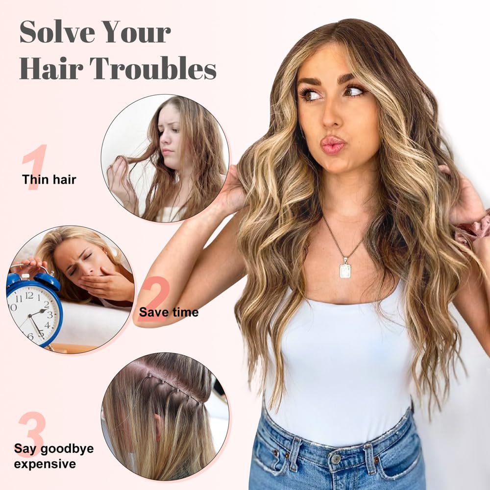 • ❤【Advantages of 4PCS Clip in Extensions】: Compared to traditional hair extensions,No tape,No glue, our hair extension only uses BB clips to fix.You can finish it in minutes.And no pressure, no damage to the scalp. this long hair wavy extension is safer and more comfortable. They can be cut, permed and washed. You don't need to rush to the Salon for a party, or be upset in an overslept morning; just spend 5 minutes wearing these hair
