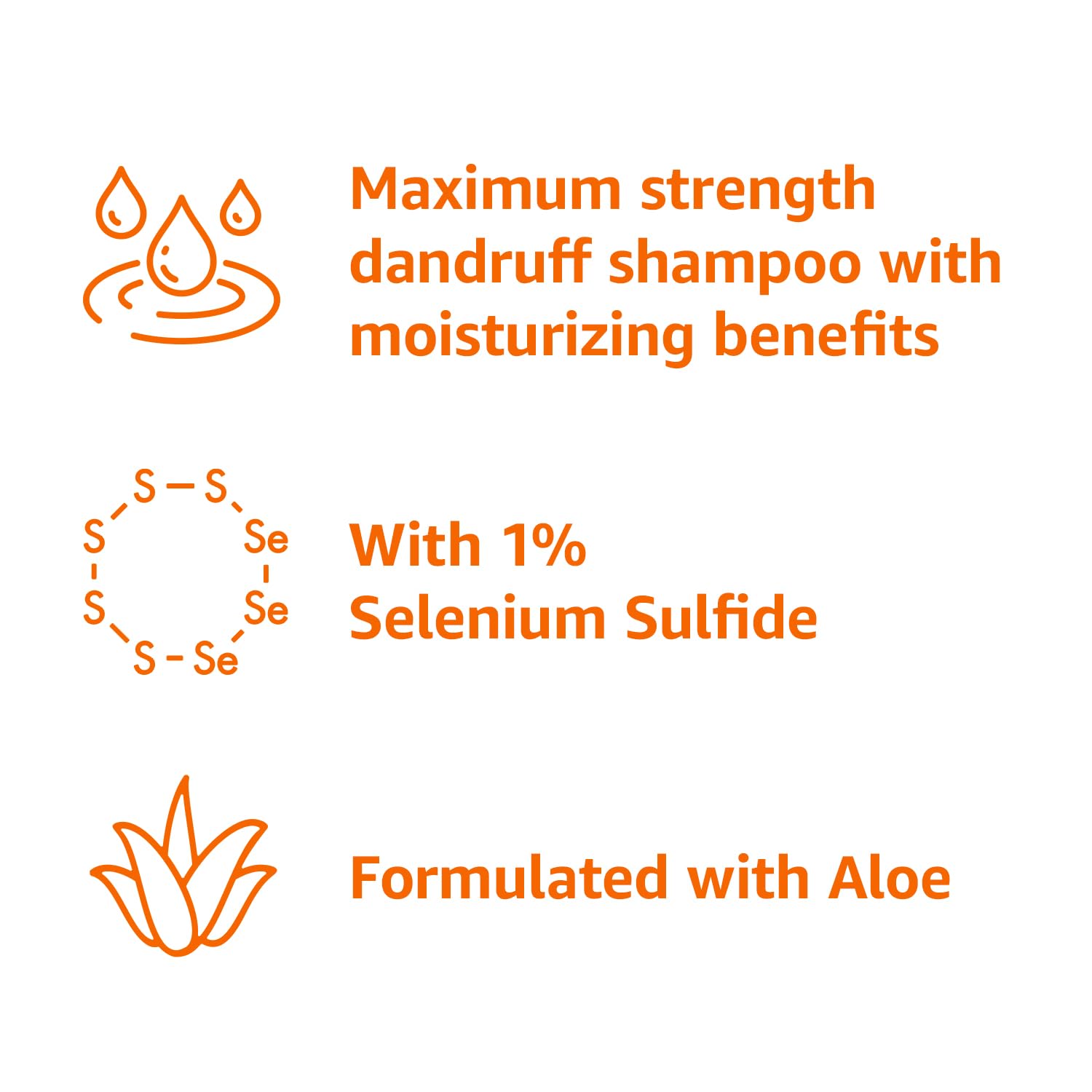 Details: Amazon Basics Moisturizing Dandruff Shampoo is a maximum strength shampoo with 1% Selenium Sulfide. Formulated with Aloe and moisturizers for relief of symptoms associated with dandruff.