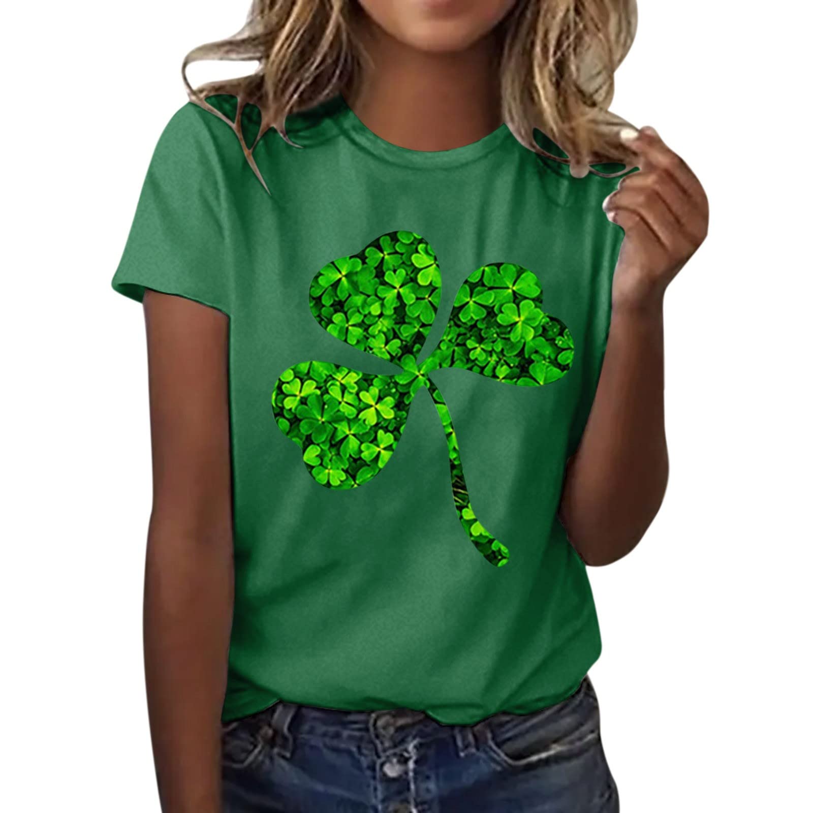 Aniywn Women's St Patricks Day Casual Short Sleeve T-Shirt Round Neck Graphic Print Tee Top Blouse