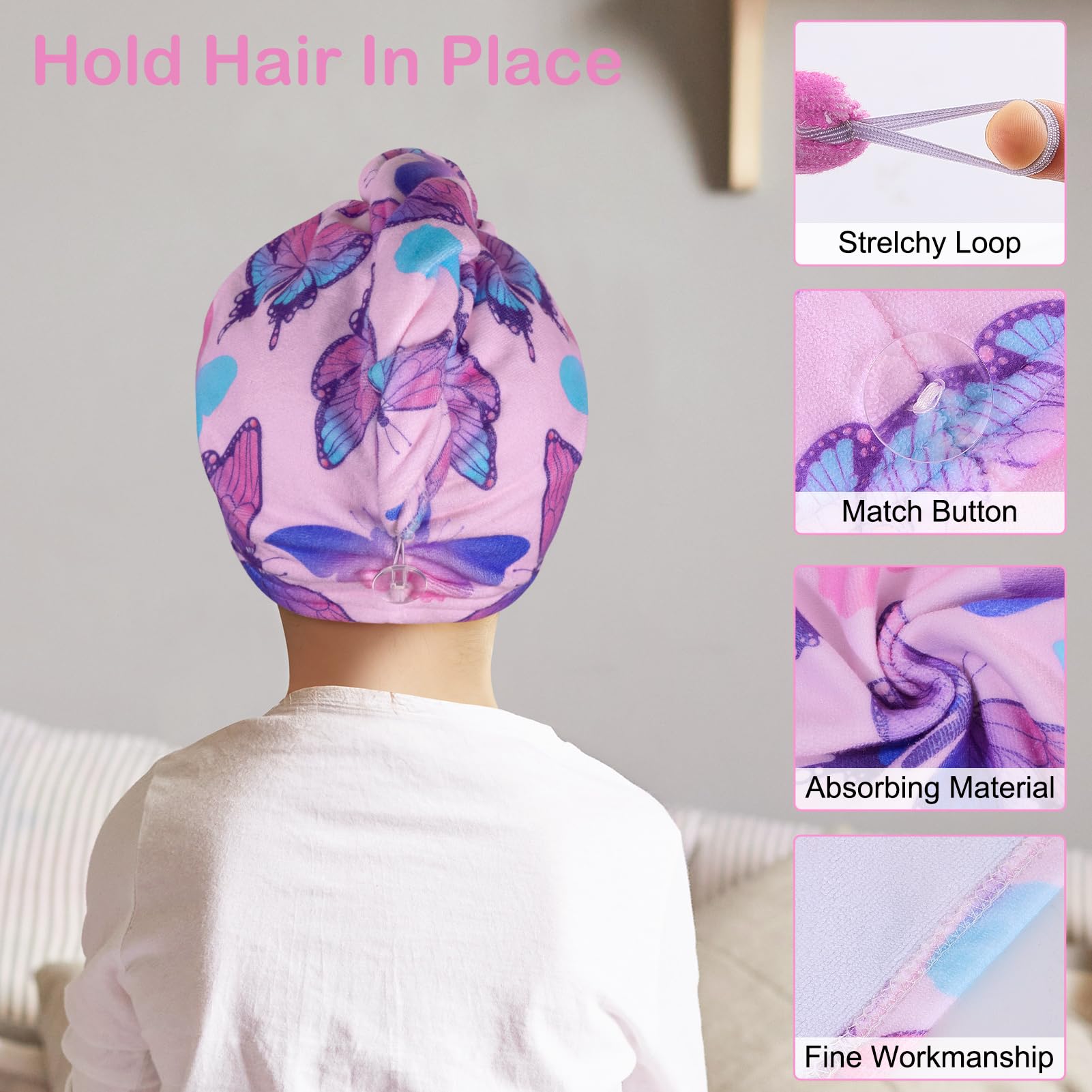 - EASY TO USE: Our hair towels comes with a button and a stretchy loop at the back, can secure the head towel wrap well, you just simply put wet hair into our hair turban, and buttoning up; You don't have to worry about the hair wrap falling off your head while you're doing other things or walking around; Two methods of operation for you to choose from, you can choose your favorite way of towel wrapping