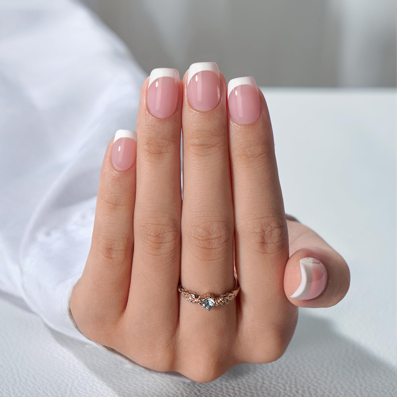 BTArtbox Press On Nails Short - Square French Tip Press On Nails, Fake Nail with Nail Glue, Natural Reusable Stick On Nails in 15 Sizes - 30 Fake Nails Kit
