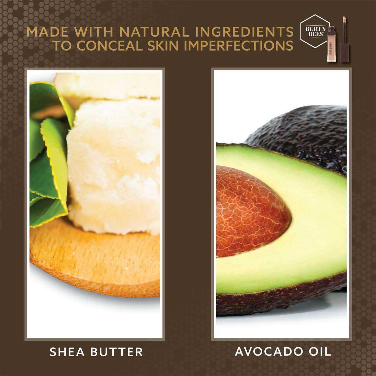 Details: Burts Bees Concealer conceals dark circles, blemishes and minor imperfections all day. This 98.5% natural concealer contains a conditioning, multi-benefit formula with lightweight pigments that conceals dark circles, blemishes and imperfections while moisturizing skin for a natural looking finish. The ultra hydrating ingredients including avocado oil and shea butter, keeps delicate skin balanced and beautiful without a heavy finish and it doesnt cake or settle into fine lines and wrinkles.