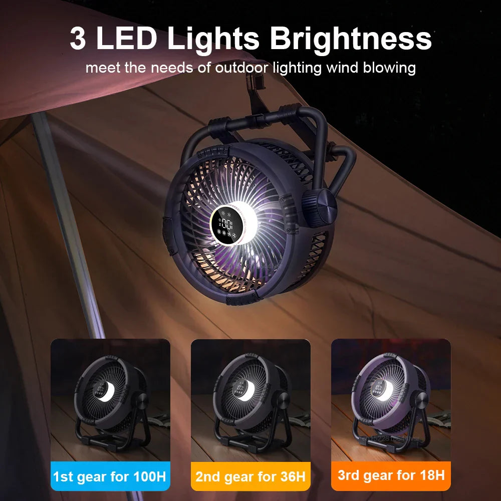 Camping Fan 20000mAh Rechargeable Portable Fan Outdoor Camping Wireless Tent Ceiling Fans with Hook and Light Air Circulators