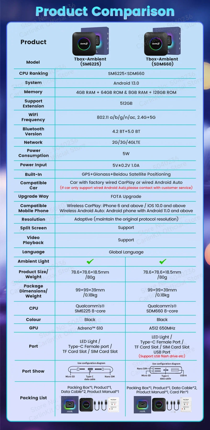>>>New Arrival Qualcomm SDM660 Android 13 CarPlay AI Box -Tbox-LED Pro
