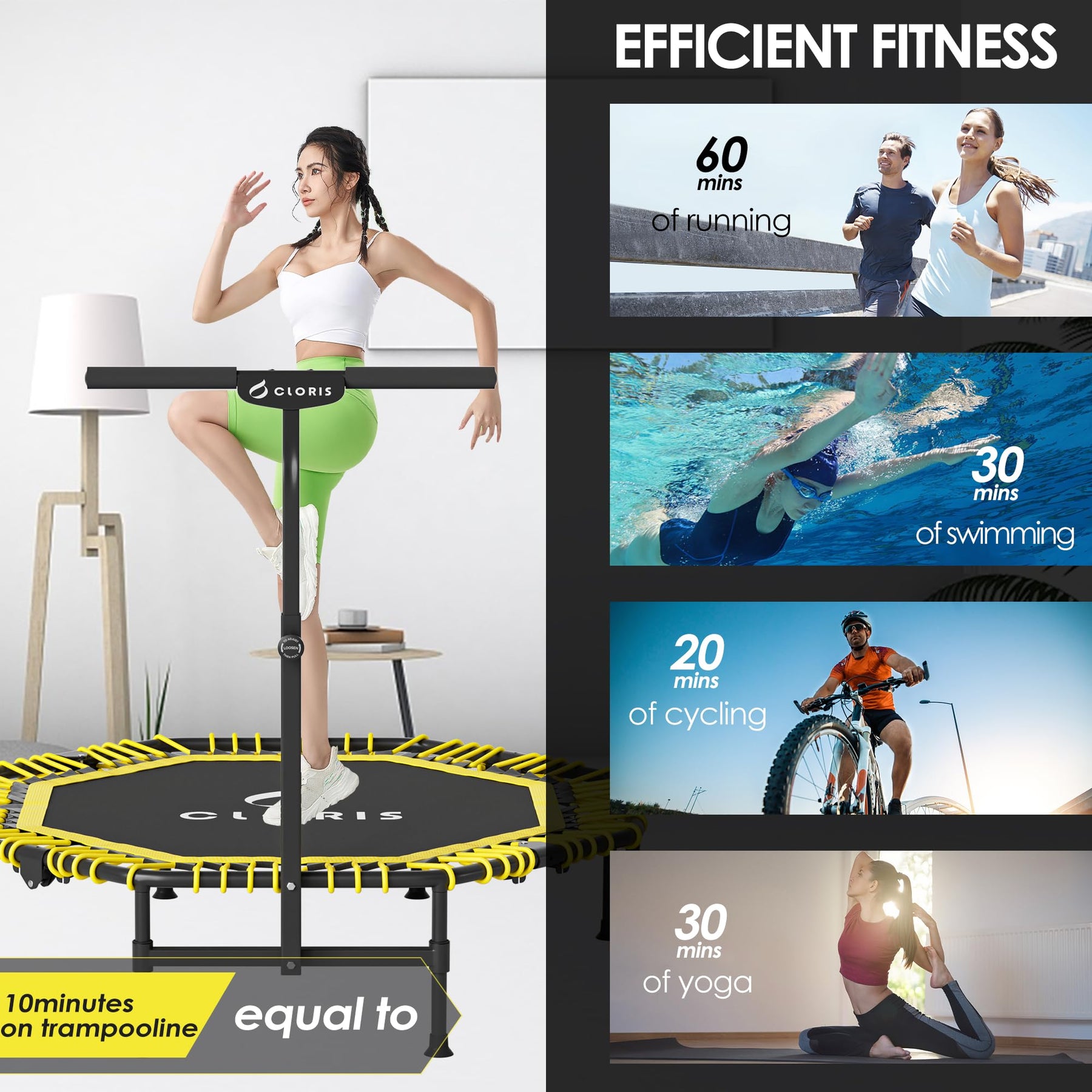 CLORIS 38in/40in/48in Folding Trampoline Mini Rebounder Fitness Trampoline with Adjustable Foam Handle for Kids/Adult, with safty Padded Cover Best Gift for Kids/Adult (Yellow)… (48in-Yellow)