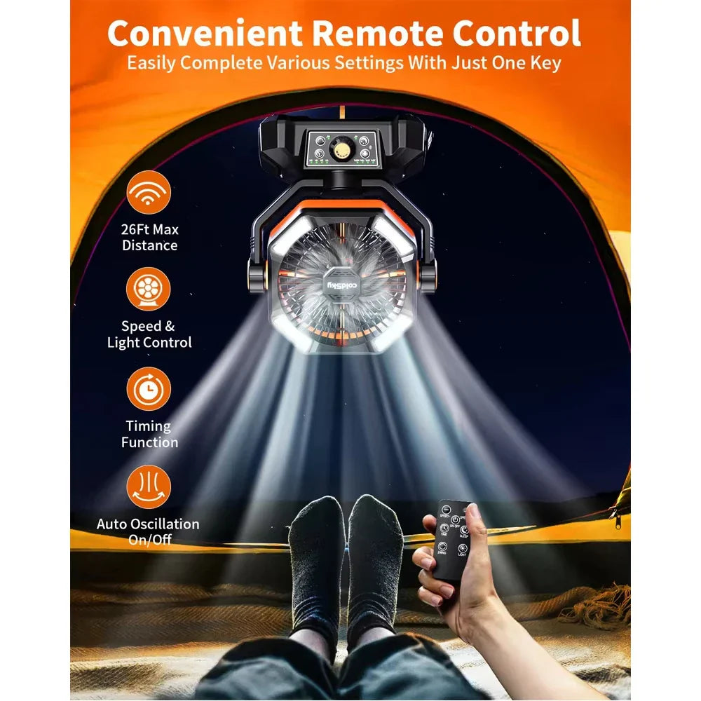 coldSky camping fan has built-in powerful dual motors and double-layer fan blades, offers 8 adjustable wind speeds. This advanced tech helps the turbo to drive more air in a faster way, Wind power is twice that of traditional outdoor fans. It can reach a blowing distance of up to 13.12Ft, Makes you feel cool quickly, perfect for outdoor use in hot summer, as well as for use as a jobsite fan, industrial fans and ventilador fan