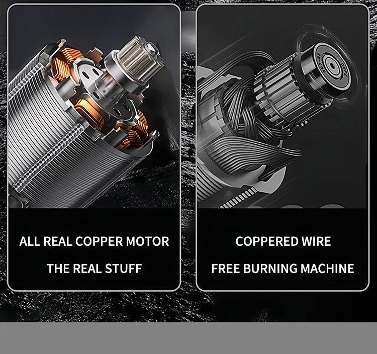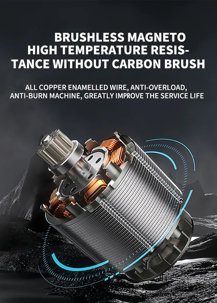 -Brushless powerful movement, high temperature resistant copper enameled wire, anti-overload, anti-burning machine.