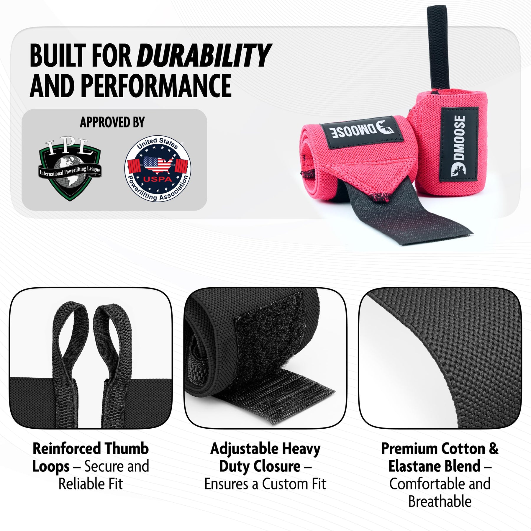 - ππππππππ πππππ πππππππ π ππ πππππ πππ ππ: Keep your wrists stable during heavy lifts with DMoose Wrist Straps for Weightlifting. Designed for reliable support, maintain proper wrist alignment, reducing strain and injury risk. Ideal for bench presses, overhead presses, and deadlifts, these weight lifting wrist wraps offer the stability you need to lift confidently. Plus they are USPA & IPL approved, making them perfect for competitive lifting and serious training.