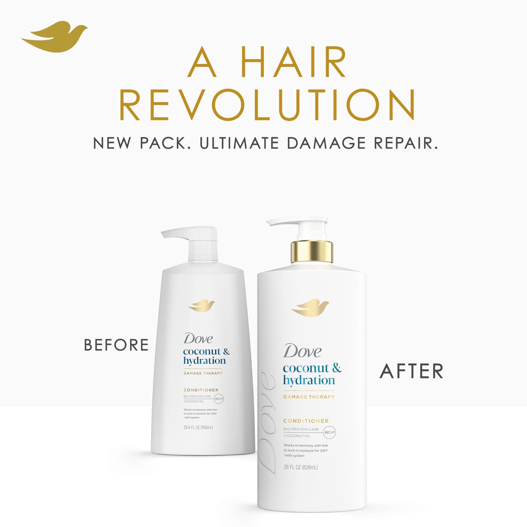 - HOW TO USE: After using the Dove Coconut & Hydration shampoo, apply and massage this hair conditioner for damaged dry hair; leave on for 1 minute, then rinse.