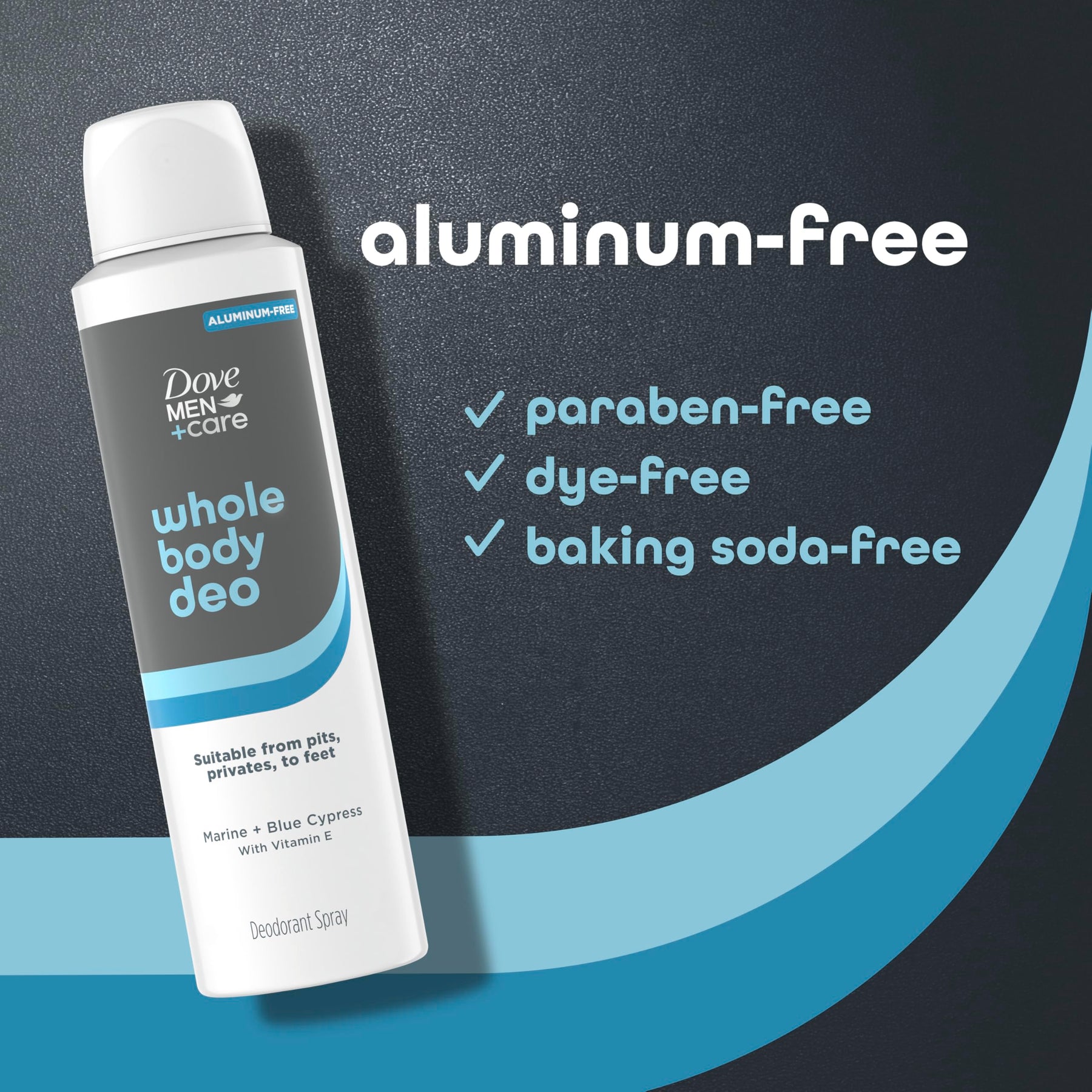Details: Odor protection isn’t just for your pits anymore. When it comes to deodorant, we know you need the real deal: odor protection for your whole body to keep you fresh and confident all day. That’s why we made Dove Men+Care Whole Body Deo deodorant spray. Our Whole Body Deo provides powerful 72H odor protection that targets odor at the source. Use this deodorant anywhere you need it—from pits, privates, to feet—to help stop odor in its tracks. Our dermatologist-tested formula is non-irritant, aluminum-free, and paraben-free, and it contains vitamin E. Directions for use: Hold the can six inches away from your body and spray desired areas. Avoid your face. Our whole body deo is vegan, and Dove is PETA-approved, meaning we do not test on animals anywhere in the world. Looking for more Dove Men+Care products? Our whole body deo range is also available in a stick format.
