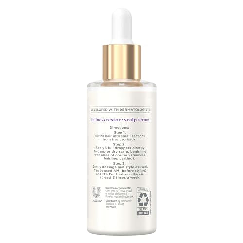 Details: Embark on a revitalizing journey with Dove Fullness Restore Scalp Serum for Scalp + Hair Therapy, featuring an advanced 0% sulfates formula enriched with scalp-nourishing Vitamin B3 and Zinc. Beyond being a mere serum, it stands as a versatile solution with a special and refreshing formula, delivering a lightweight, voluminous look suitable for all hair types. In an insightful 90-day independent clinical trial involving 74 women, an impressive 89% witnessed the transformative effects of visibly thicker, stronger, and fuller hair, underscoring the remarkable efficacy of Dove's formulation. At the heart of Dove's Scalp + Hair Therapy Density Boost regimen, this scalp serum actively nurtures roots and fortifies fibers, ensuring enduring hair strength and density. Formulated with dermatologists and drawing from over 60 years of skincare expertise, Dove's Fullness Restore Scalp Serum is a testament to a thoughtful formulation that goes beyond conventional hair care. Explore the comprehensive list of Dove products within the Density Boost regime for an elevated beauty experience. Dove's commitment to Real Beauty extends beyond product efficacy; it is a commitment to ethical practices. Upholding cruelty-free standards globally, Dove proudly carries the PETA-Approved Vegan certification. Choose Dove for a beauty regimen that not only enhances your hair's fullness but also aligns with ethical and cruelty-free values, embodying the essence of Real Beauty in every strand. With Dove, your hair care becomes a celebration of strength, fullness, and conscious beauty, as you embrace the transformative power of Real Beauty in every aspect of your life. Experience the profound impact of Dove's thoughtful and effective approach to beauty, where every strand tells a story of strength, nourishment, and conscious choices.
