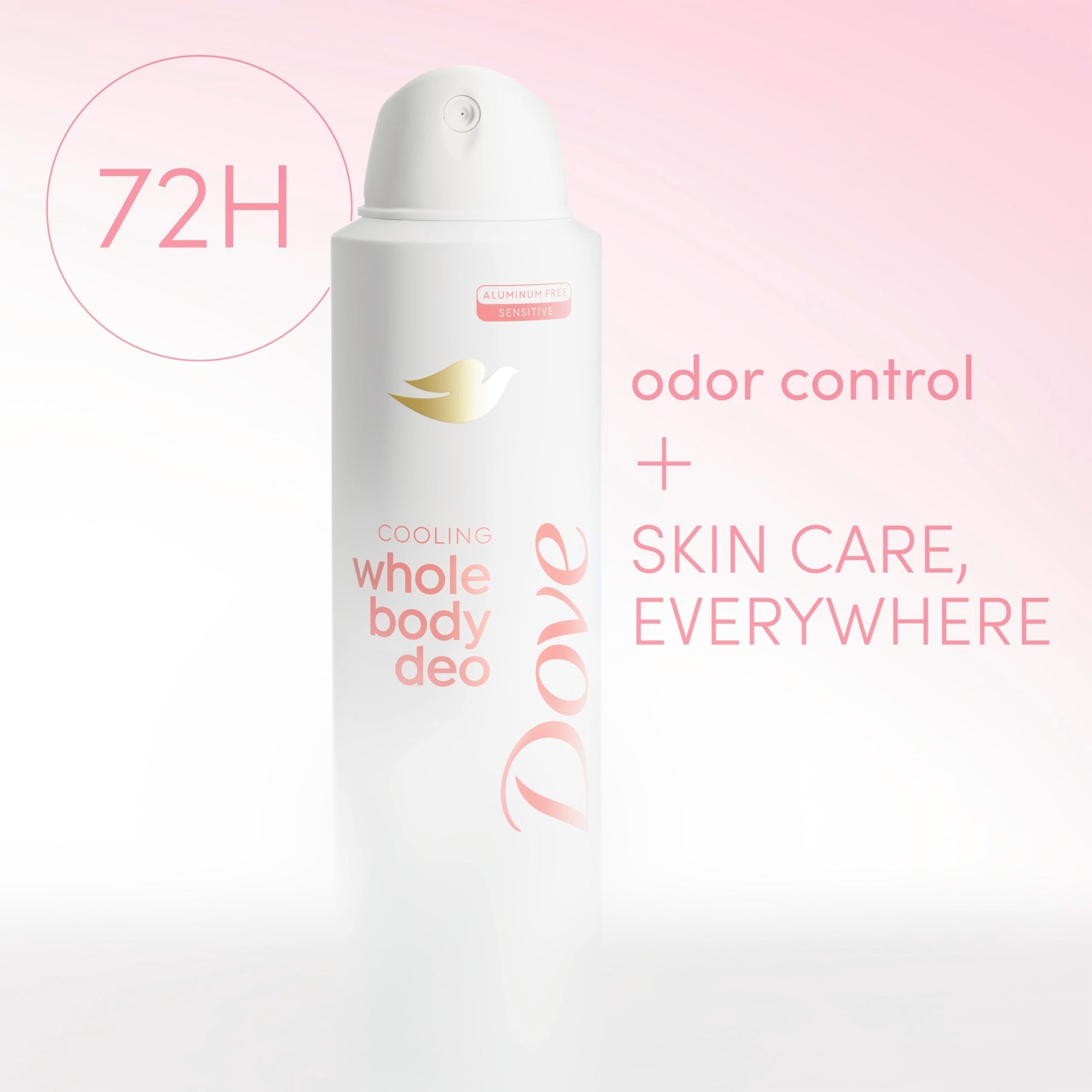 Details: Ready for full-body freshness? Meet Dove Whole Body Deo Raspberry & Rose Cooling Deodorant Spray. This invisible deodorant spray instantly cools your skin and delivers 72-hour odor control when you need it the most. From heatwaves to hot yoga, sweat and odor happen - and not just on our underarms. But don’t worry, our whole body deodorant has your back, pits, toes and thighs (or wherever else* you want to feel fresh). It sprays on invisibly and dries instantly, helping you feel cool and confident throughout the day, whatever your plans. Even better, this dermatologist-tested whole body spray is infused with a skin-loving blend of 2% glycerin & vitamin E, to gently nourish and hydrate your skin while tackling odor. Plus, it’s gentle, kind-to-skin formula is free-from aluminum and parabens. Not only does it keep odor away, our Whole Body Deo Raspberry & Rose Cooling Deodorant Spray is infused with an irresistible scent that leaves you feeling revitalized and refreshed whenever you spray it.*Not for intimate area use.
