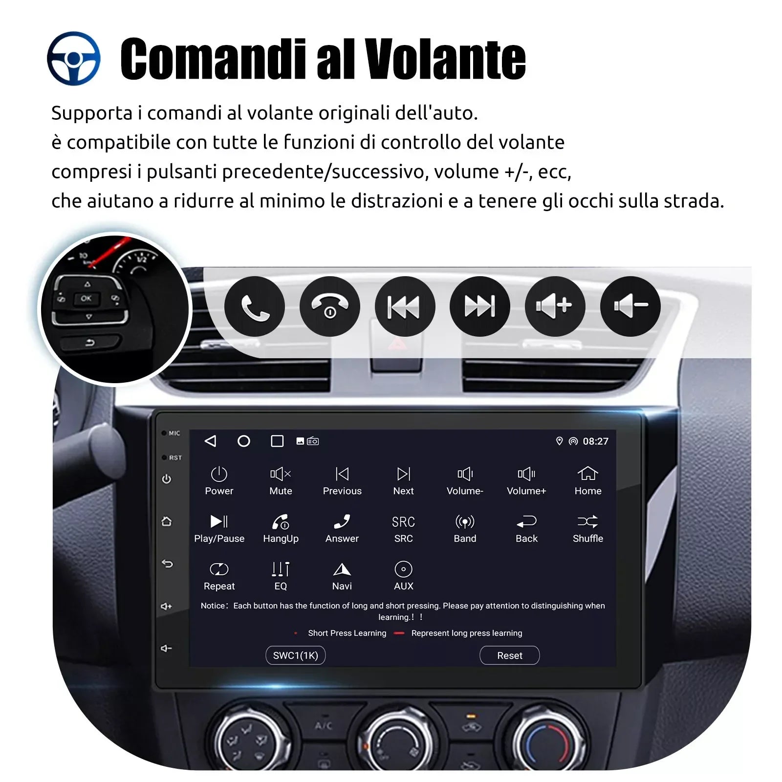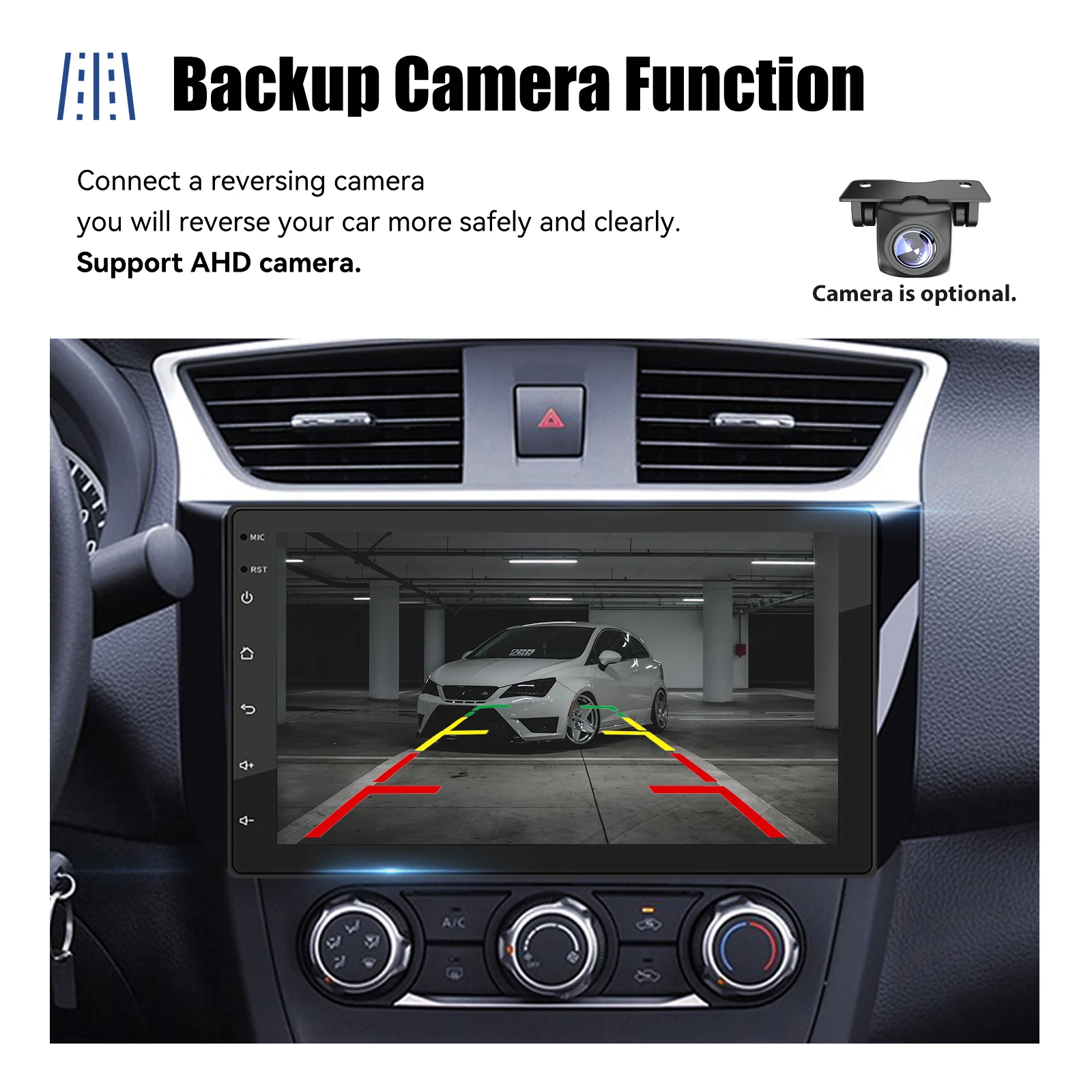 Rear view camera input & SWC: Supports the rear view function. After the camera is installed correctly, the radio automatically turns on the camera and displays an image on the screen when you put the car in reverse. Supports steering wheel control function and more. You can switch to the functions you want quickly and more conveniently.
