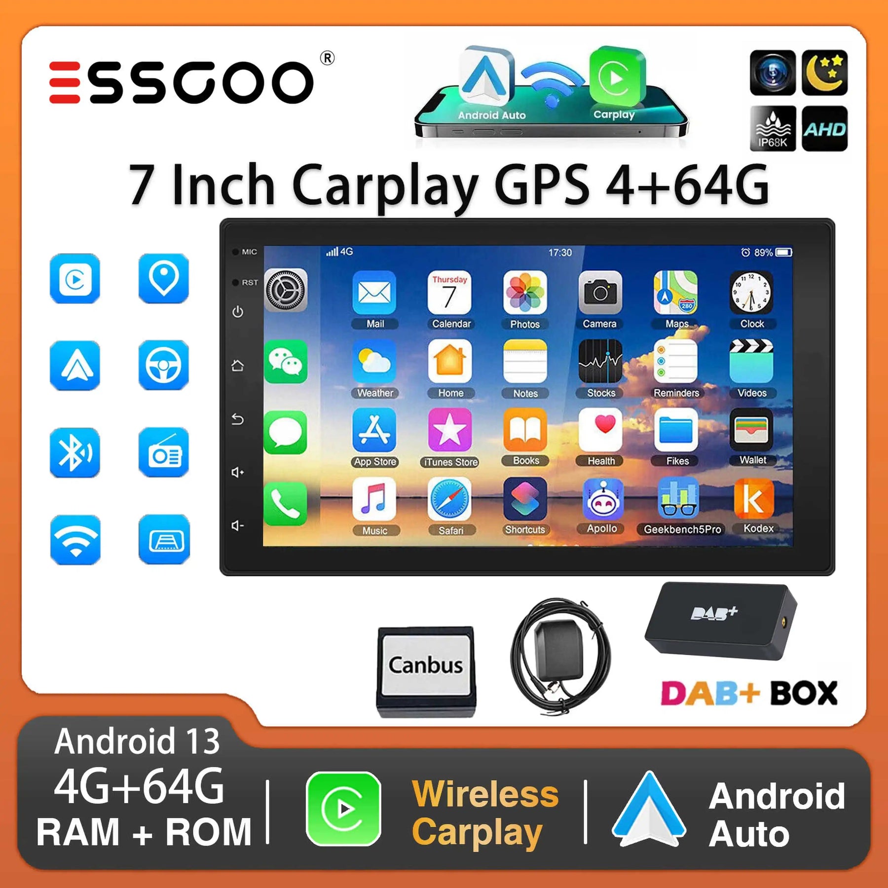 Supports DAB+ (DAB+ box in the package)-- Digital audio broadcasting enables you to enjoy multi-regional music with your local well-known and also new channels. CD sound quality and low noise with excellent transmission make DAB Radio a special experience in the vehicle. making DAB accessible to most European countries.