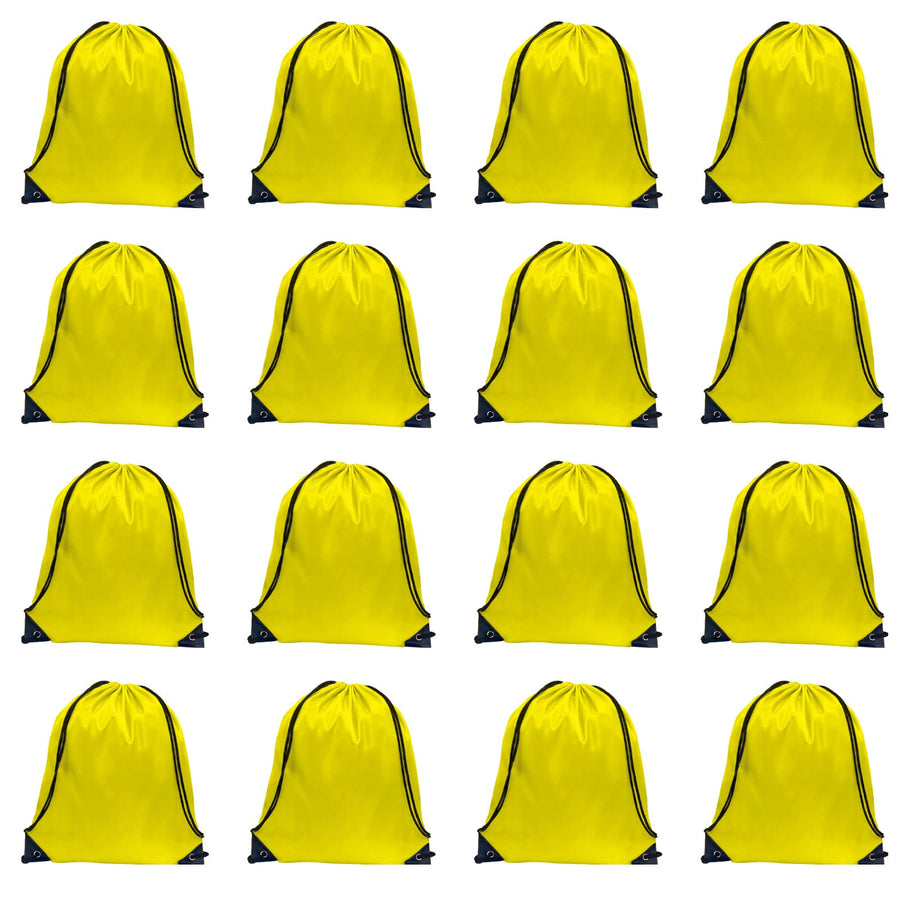 GoodtoU Drawstring Bags, Drawstring Backpack Bulk Nylon Backpack Draw String Back Bag Cinch Sack Drawstring Gym Bag String Backpack for Sport, Traveling, Team (Yellow, 16Pcs)