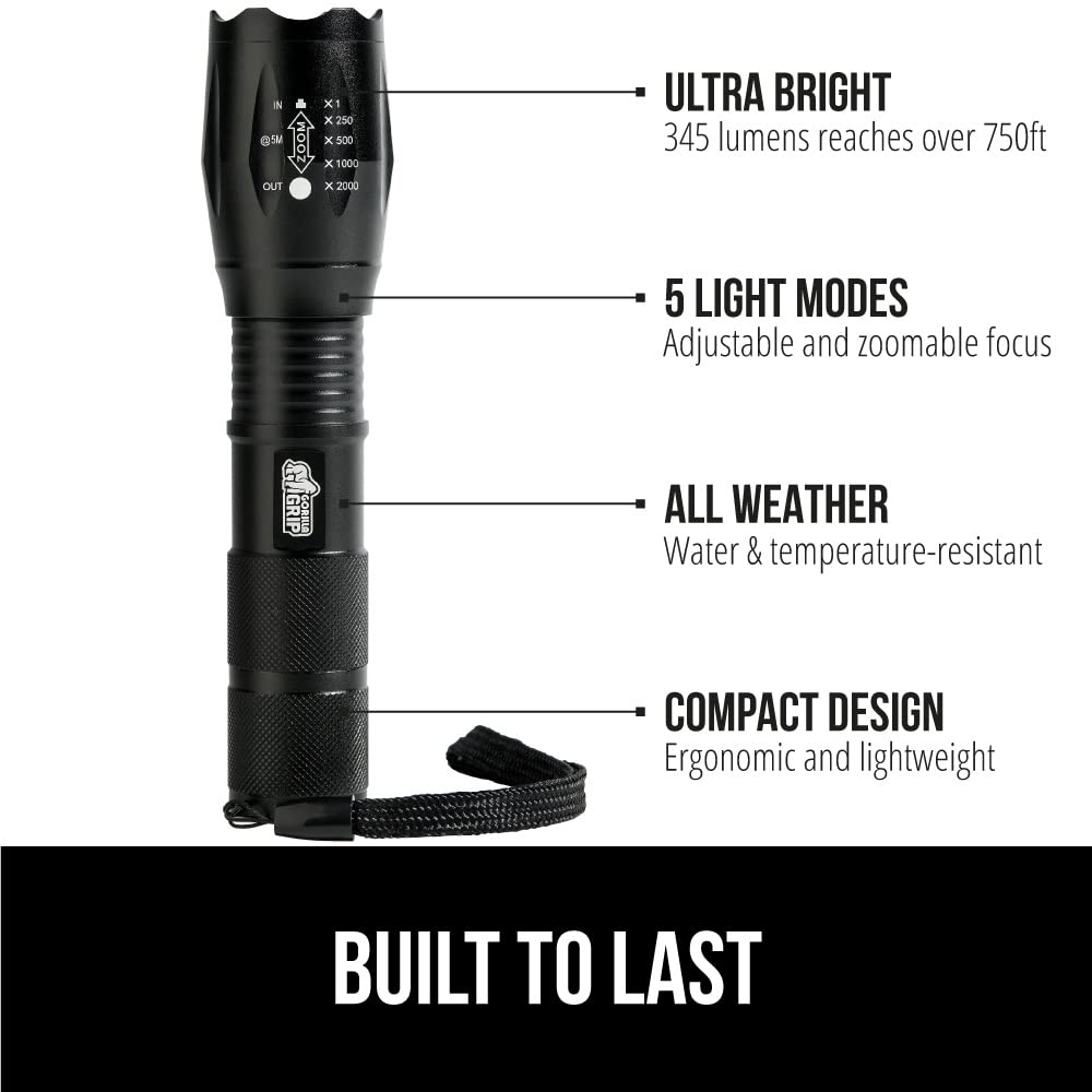 - TESTED FOR POWERFUL BRIGHTNESS: featuring more lumens, this LED flashlight will surprise you; compact and lightweight, but ultra bright, it features 345 lumens that reach over 750 feet to shine bright and shed more light; others may claim to have high lumens, but our numbers have been uniquely engineered, tested and confirmed; powered by (3) AAA batteries; batteries not included