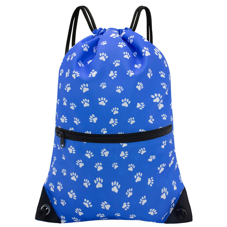HOLYLUCK Drawstring Backpack Bag Sport Gym Sackpack (Blue background White Dog Paw Prin)