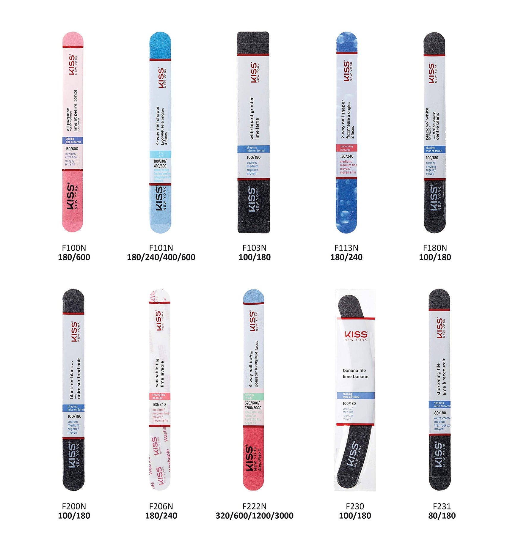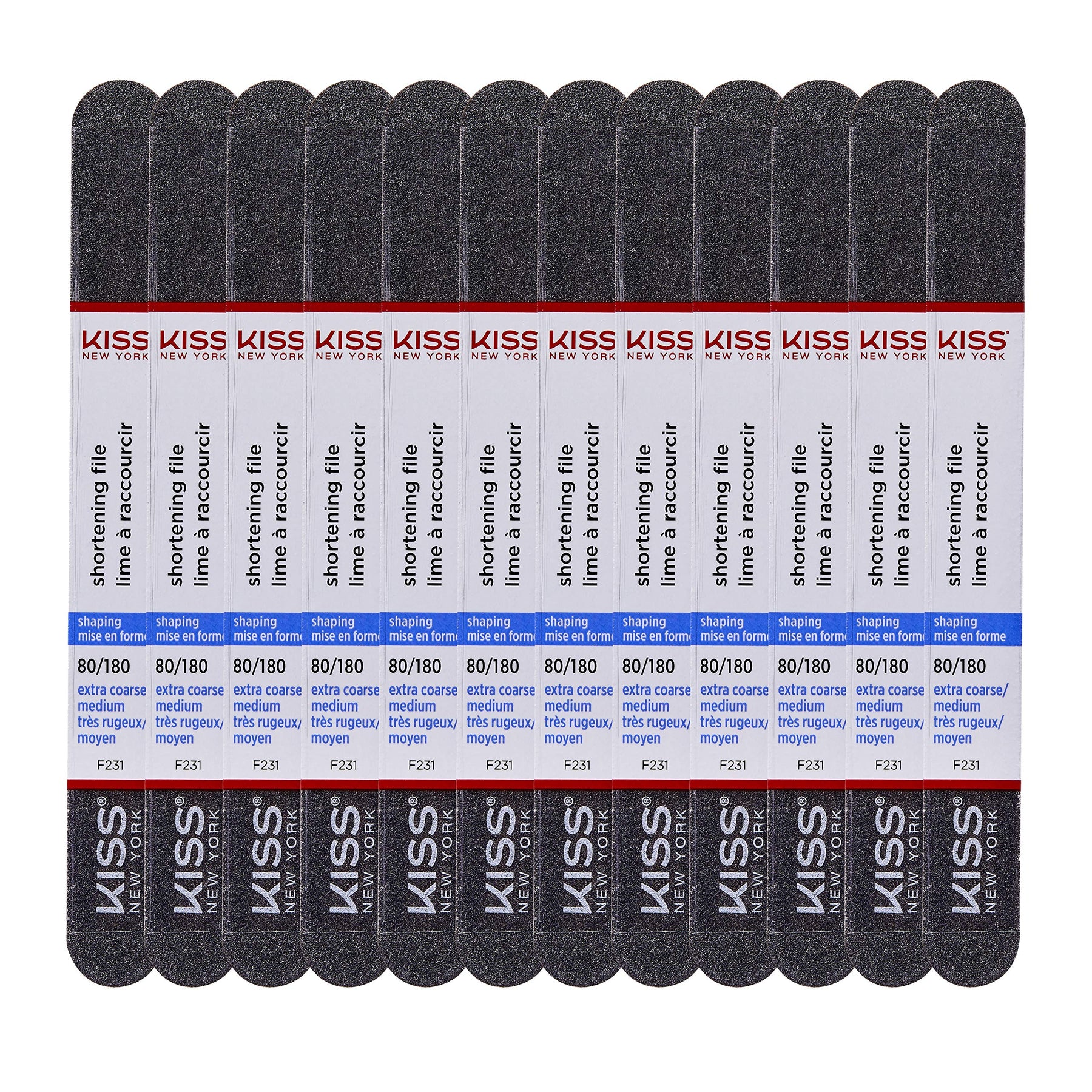 Details: Kiss Shortening file 80 Extra Coarse / 180 Medium F231 - Pack of 12 Shortening File Best For Natural Nails For grooming perfection Suitable for both Professional & Personal use