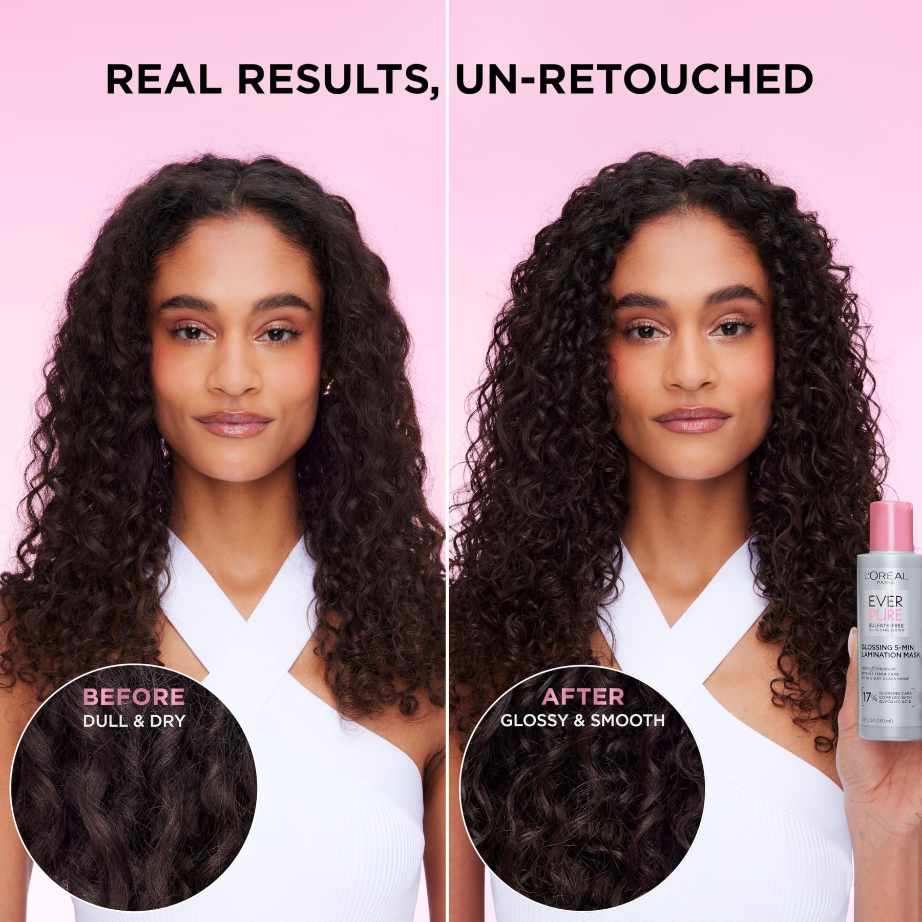 L'Oreal Paris Glossing Lamination Hair Mask with Glycolic Acid, Hair Treatment for Lasting Shine and Smoothness for Dull, Dry Hair, EverPure, 5.1 Fl Oz