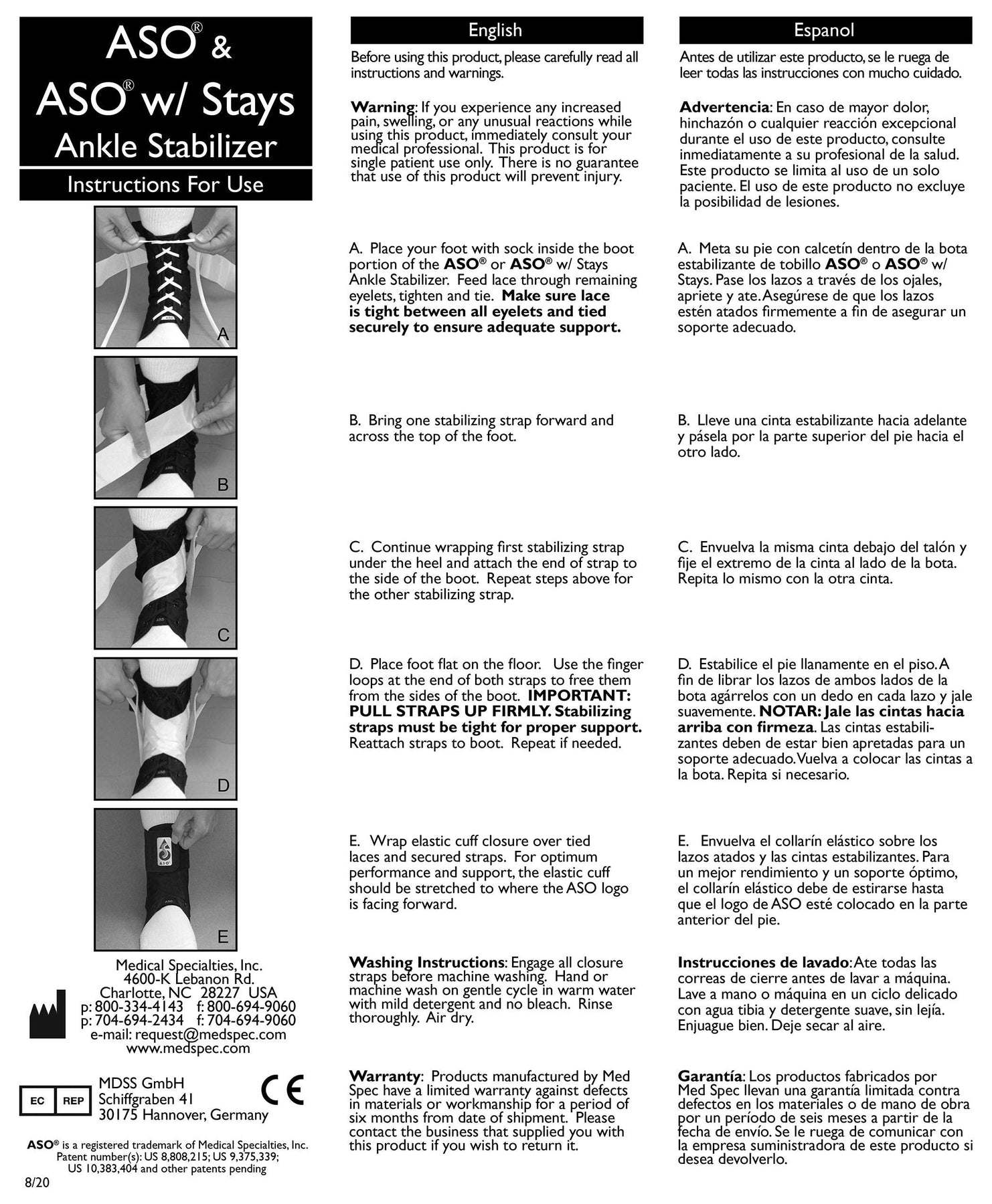 - Includes nylon ASO ankle stabilizer (medium) and ASO ankle stabilizer (small).