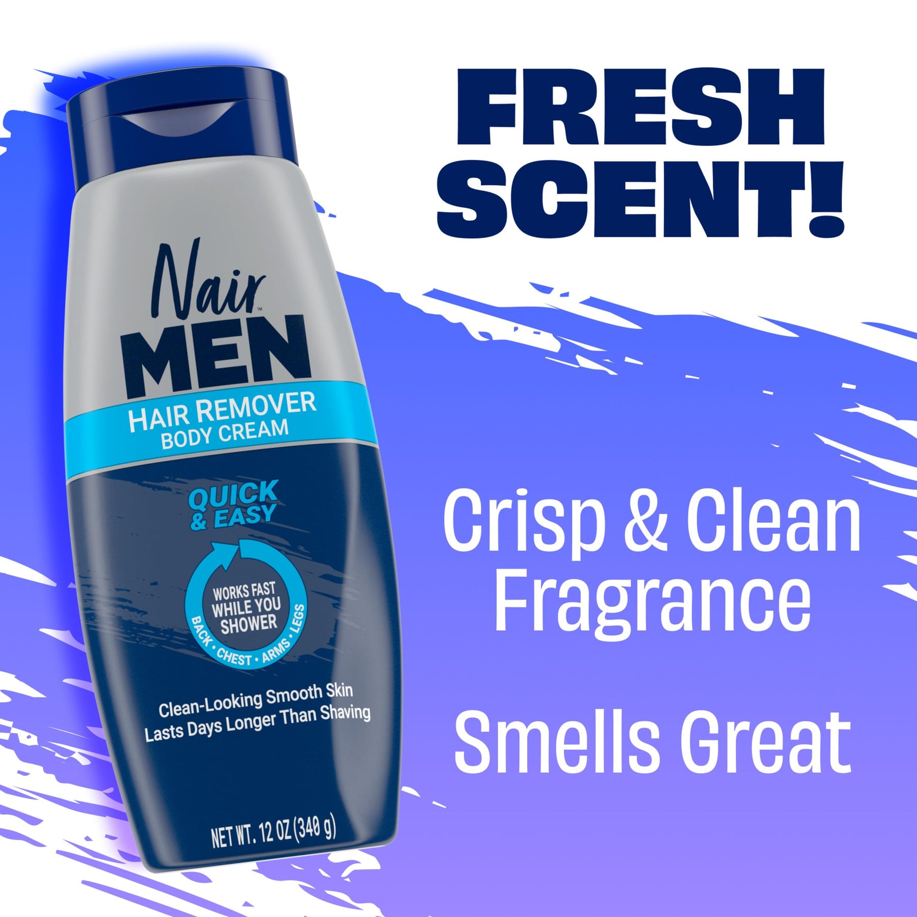 Details: THE NEW NAIR EXPERIENCE! Say hello to blade-free, hair-free, carefree skin that stays smooth days longer than shaving. Nair Men Hair Remover Body Cream works fast while you shower to wash away unwanted body hair. Whether you want to show off your physique, keep things smooth to the touch or give yourself a confidence boost, anything and everything is up to you. This body hair remover for men dissolves hair below the skin’s surface, so you get smooth skin for days without the hassle, razor burn and prickliness of shaving. Effective on coarse, thick hair, Nair body hair removal cream works on the back, chest, arms and legs for painless body hair removal for men. Trusted since its introduction in 1940, Nair has always been a leader in hair removal. Always patch test before use (see instructions).