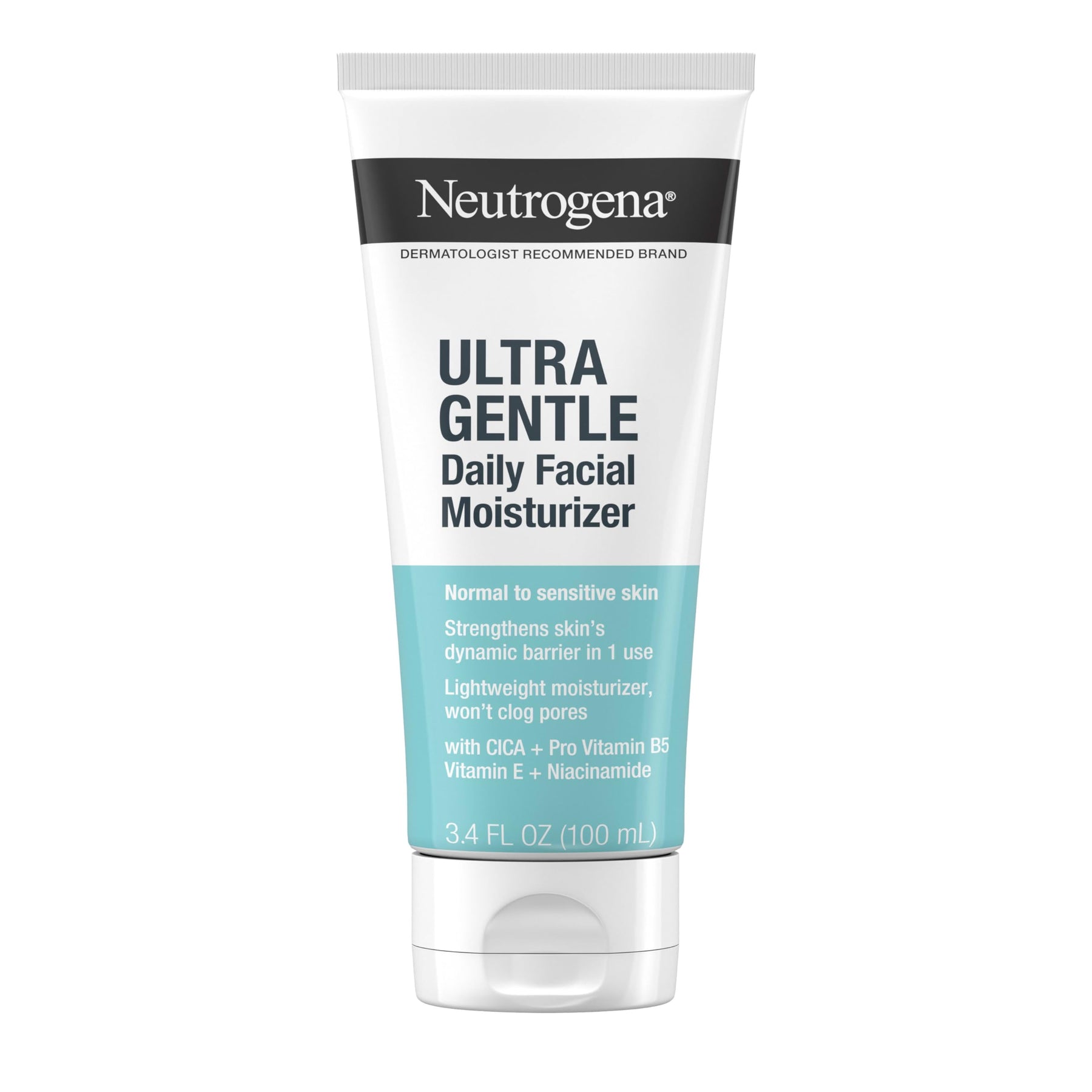 Details: Neutrogena Ultra Gentle Daily Facial Moisturizer conditions skin and helps support skin's dynamic barrier without clogging pores. The lightweight moisturizer is ideal for sensitive and reactive skin that can appear red, tight, dry, or uncomfortable. This face moisturizer with CICA comes from a dermatologist-recommended skin care brand, conditions skin and helps fight daily environmental aggressors. The daily moisturizer contains a multivitamin complex with Vitamin B3, also known as niacinamide, and Pro-Vitamin B5 to condition skin and Vitamin E, known to fight daily environmental aggressors. The sensitive skin moisturizer is free of fragrance, dyes, parabens and phthalates and its gentle formula won't clog your pores. To use as part of your daily skin care routine, apply the facial moisturizer evenly to face after cleansing. This facial moisturizer is made to be applied during the day and during the night.