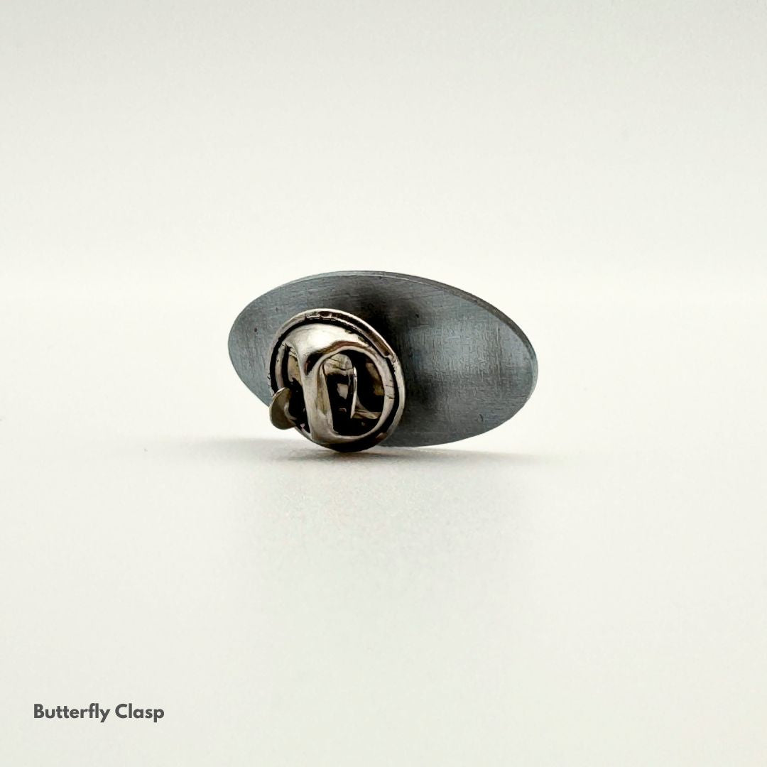 NOW WITH A MAGNETIC BACK OPTION! No more holes in the cap, no more poking your head with the bulky butterfly clasp. This strong magnet works through even the thickest of cap materials, including leather!