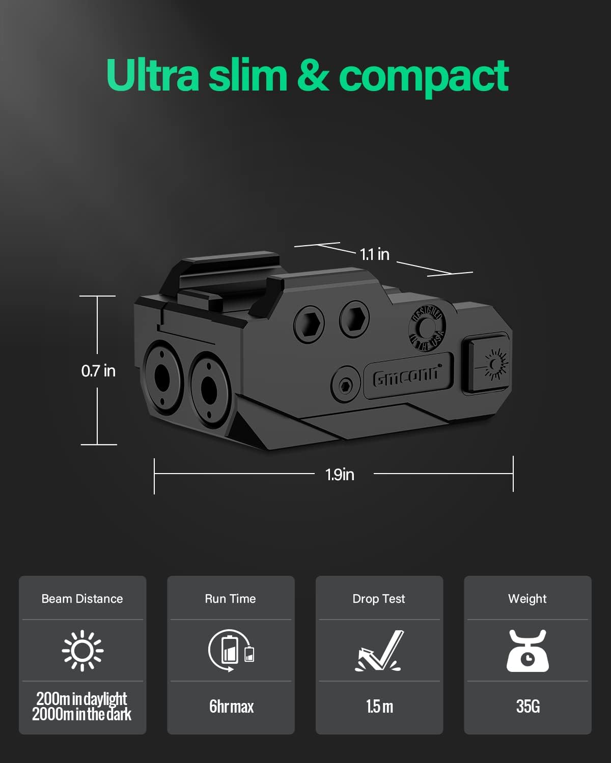 - 【Slidable Rail System】Slidable rail system offers your the best position freely. Also makes the dual blue green laser sight be compatible with G2C /G3C/ Glocks w/ a rail perfectly. No Sticking out for compact.
