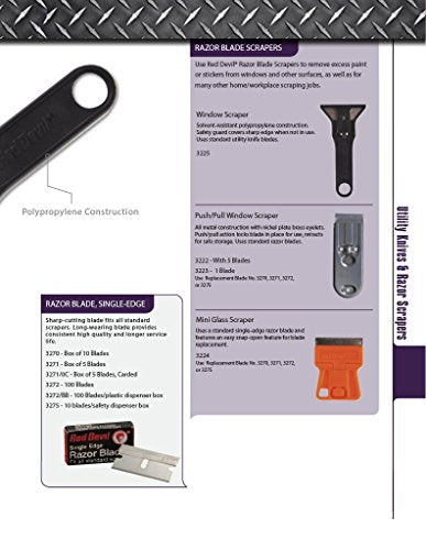 Sharp-cutting blade fits all standard scrapers. Long-wearing blade provides consistent, high quality and longer service life. Box contains 5 blades. Use with Red Devil Scraper #'s 3222, 3223 and 3224.