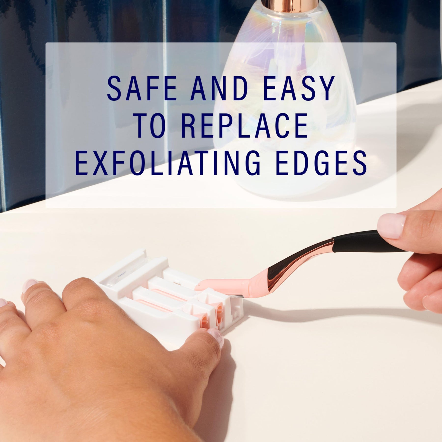 - SAFELY ATTACH AND DETACH THE EXFOLIATING EDGES with the included refill dispensing tray.
