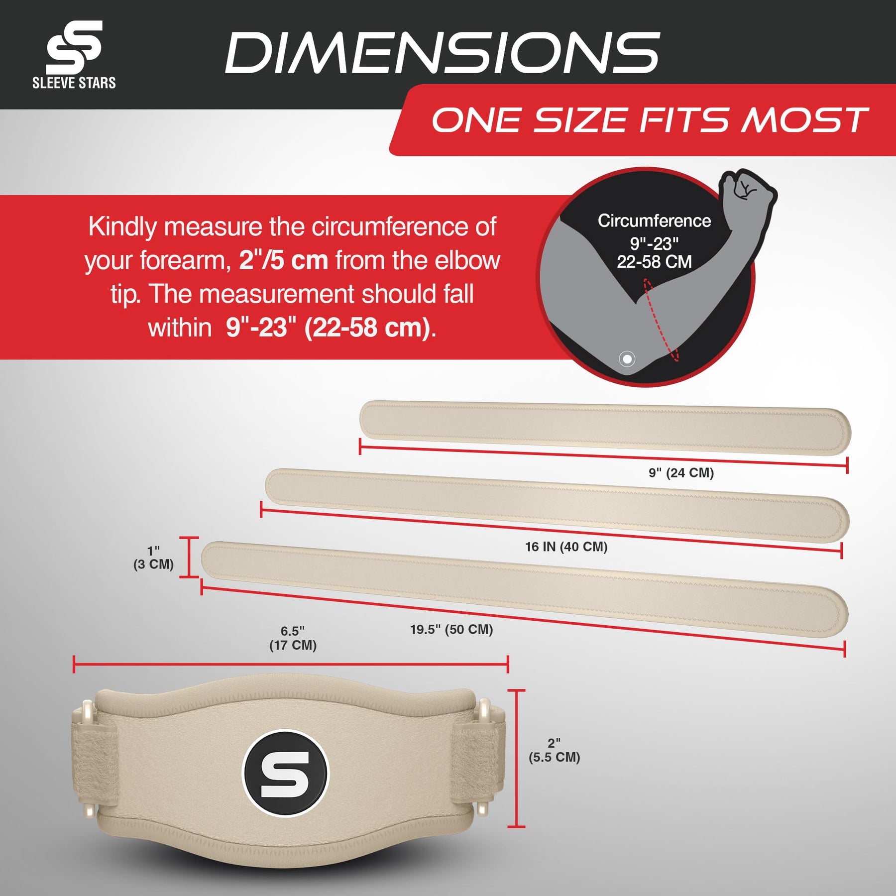 Sleeve Stars Tennis Elbow Brace for Men & Women, Tendonitis Elbow Brace & Strap Golfers Elbow Brace Counterforce Band for Tendon Pain Relief & Support for Forearm w/ 3 Straps Fits 9-23" (Pair/Beige)