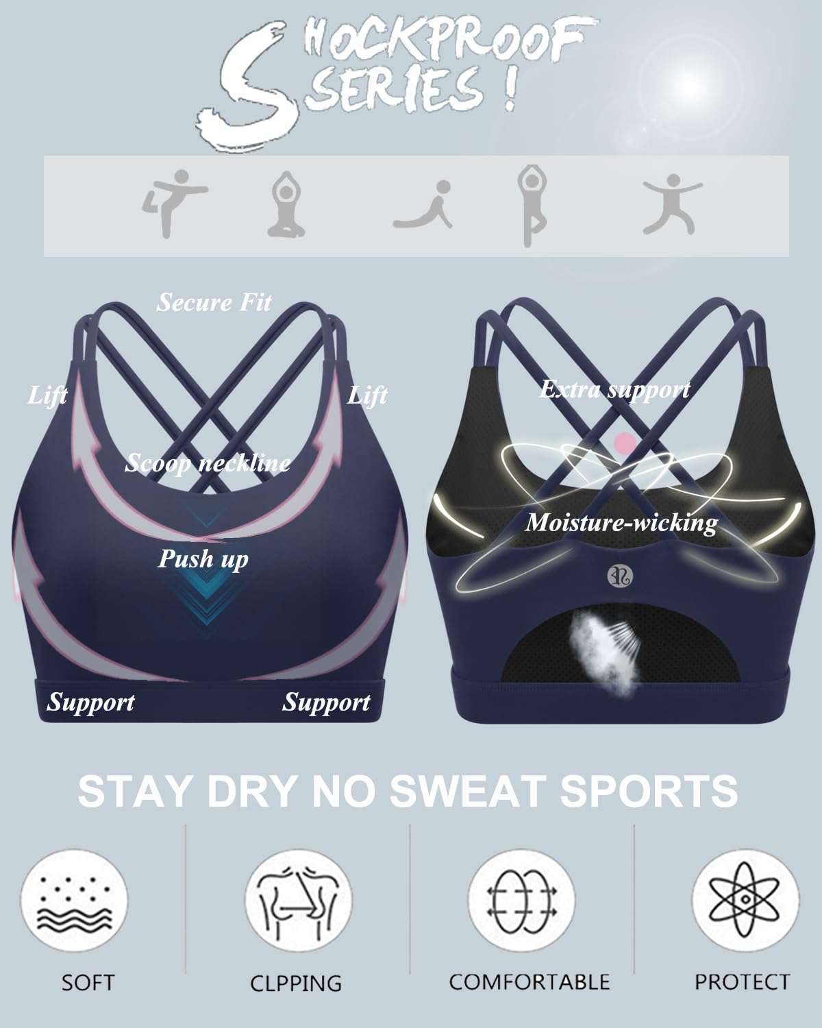 - √MEDIUM SUPPORT- Perfect for A/B cups, Light compression sits close to keep everything in place and minimizes bounce, elastic band underneath, prevent rolling up. Whether you're running a 10k or just running some errands, the sports bras for women high impact will serve your lifestyle's needs. Perfect for tennis, running, yoga,workout or whatever else you throw at it.
