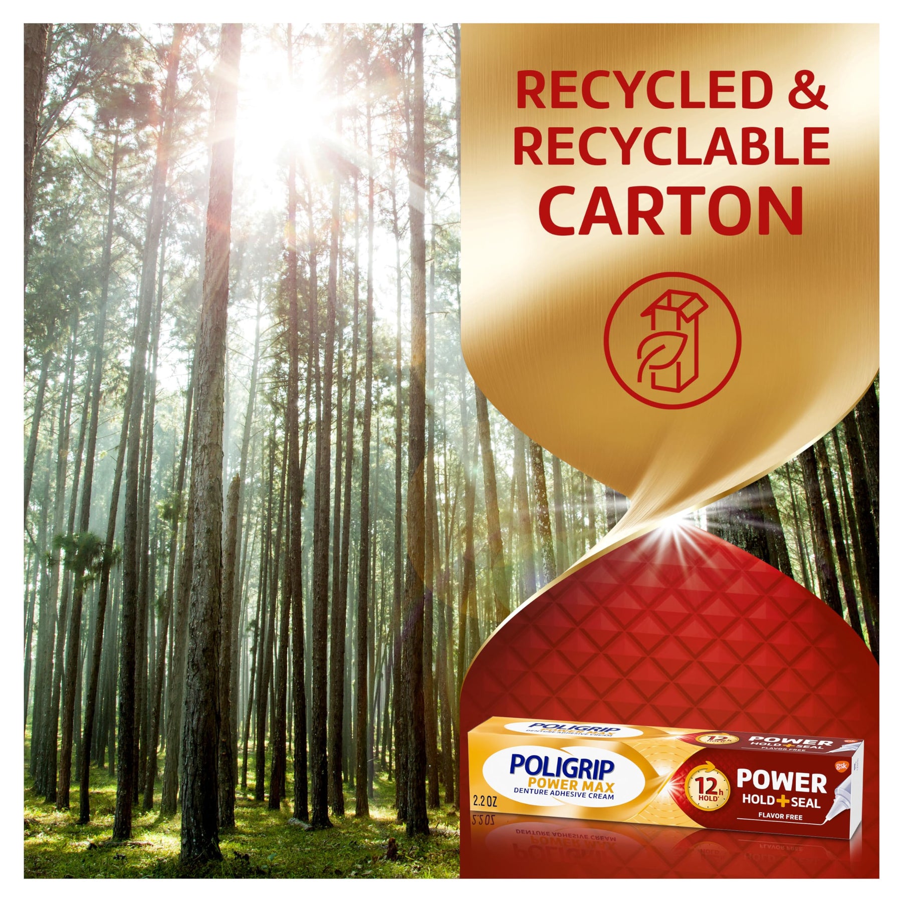 Details: Poligrip Power Max Power Hold + Seal Denture Adhesive Cream gives your dentures the strongest all day hold with 5x the protective food seal (1, 2). Even well-fitting dentures are susceptible to food particles that can cause discomfort and gum irritation. This Poligrip denture adhesive cream is x16 clinically proven and delivers the strongest hold (2) and features a precision nozzle that enables the denture cream to deliver an all around seal to help keep food from getting stuck under your dentures. This denture adhesive is formulated to be flavor free. The smaller tube size is perfect for tucking in your travel bag or purse for on-the-go denture products. Just apply a small amount of dental adhesive to clean, dry, well-fitting dentures once daily as part of your dental care routine for 12 hour hold. Poligrip Power Max dental adhesive creates a layer between your dentures and gums for a comfortable fit and strong, all day hold, allowing you to eat, speak and smile with confidence. (1) versus no adhesive (2) within Poligrip range