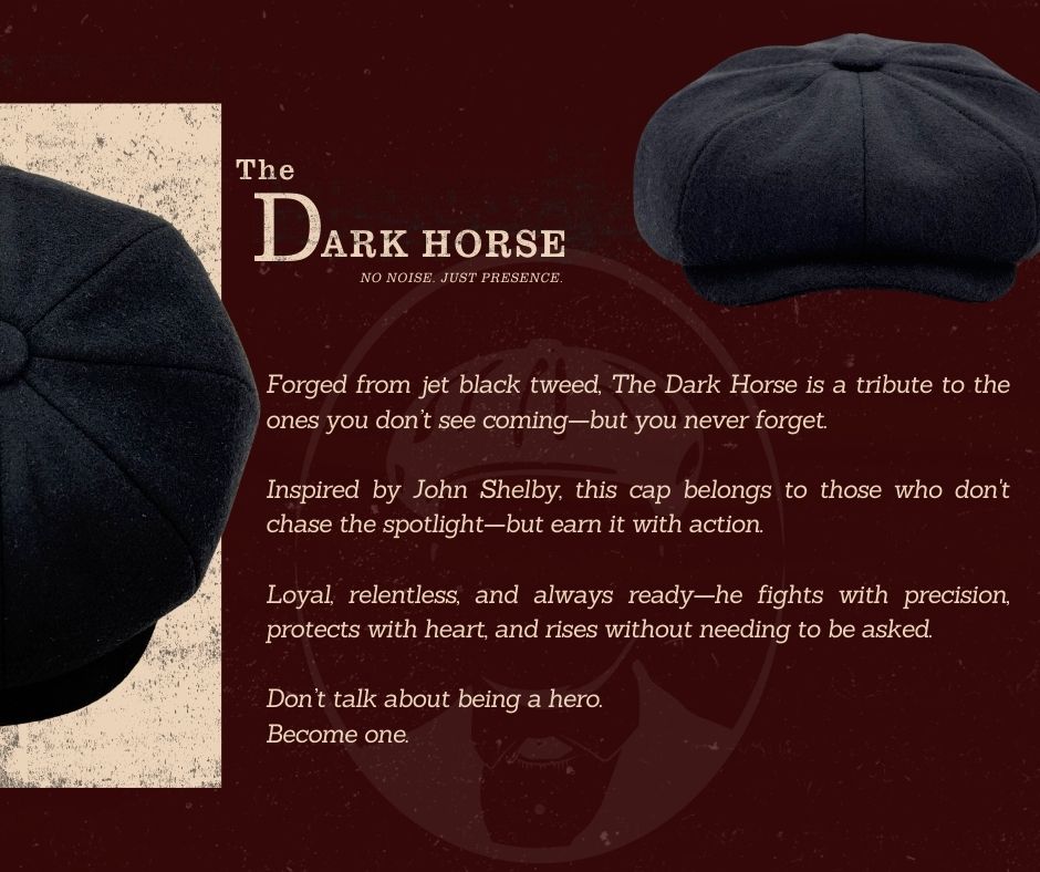 Forged from jet black tweed, The Dark Horse is a tribute to the ones you don’t see coming—but you never forget.