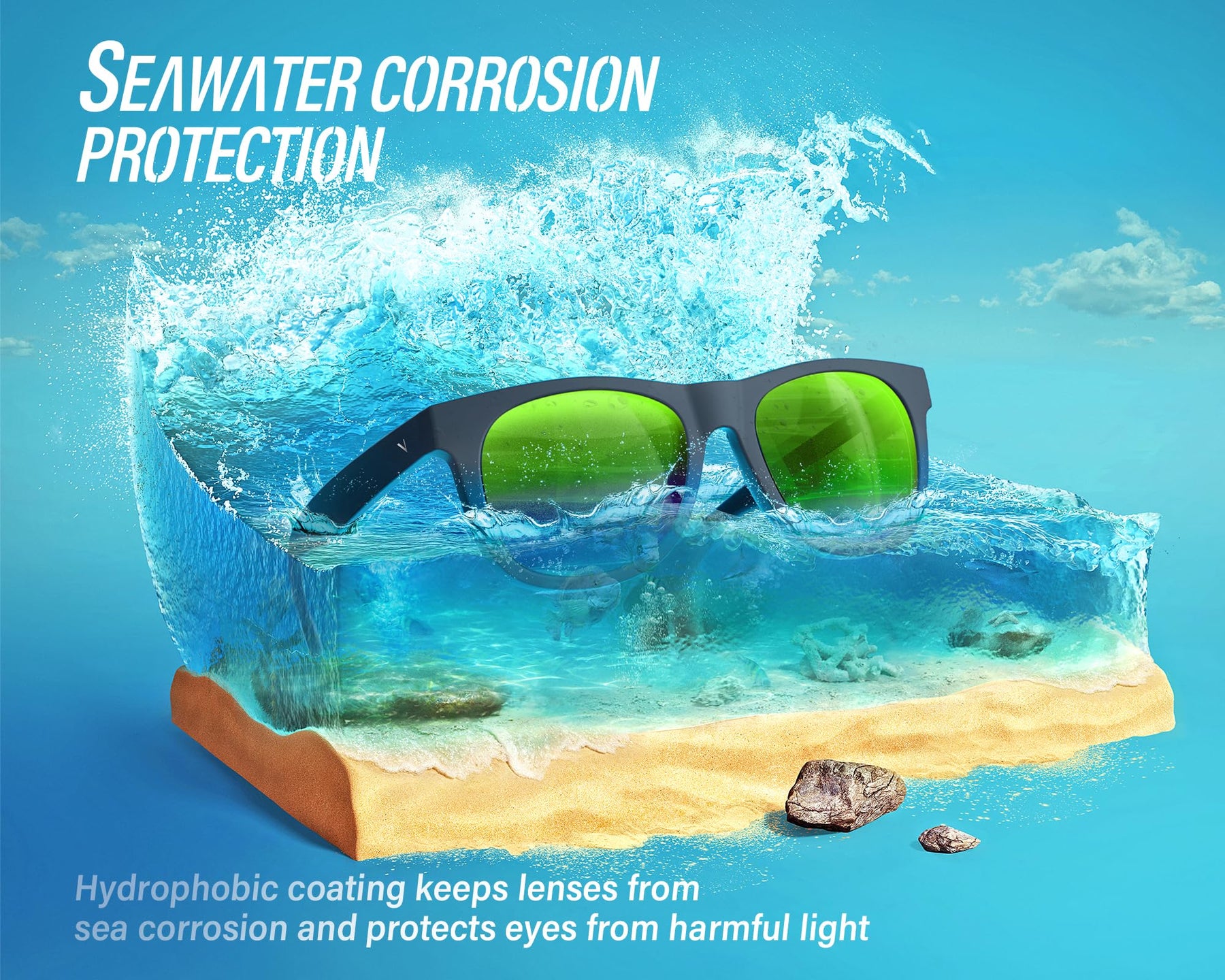 • UV400 Protection and More – Built-in UV filter blocks 100% of all UVA, UVB up to 400nm and even some of harmful blue light. Impact and scratch resistant lenses offer peace of mind; furthermore, anti-saltwater treatment allows you to fully enjoy beach hours. Reflective mirror coating (on certain models) reflects glare and serves as an extra layer to increase longevity.