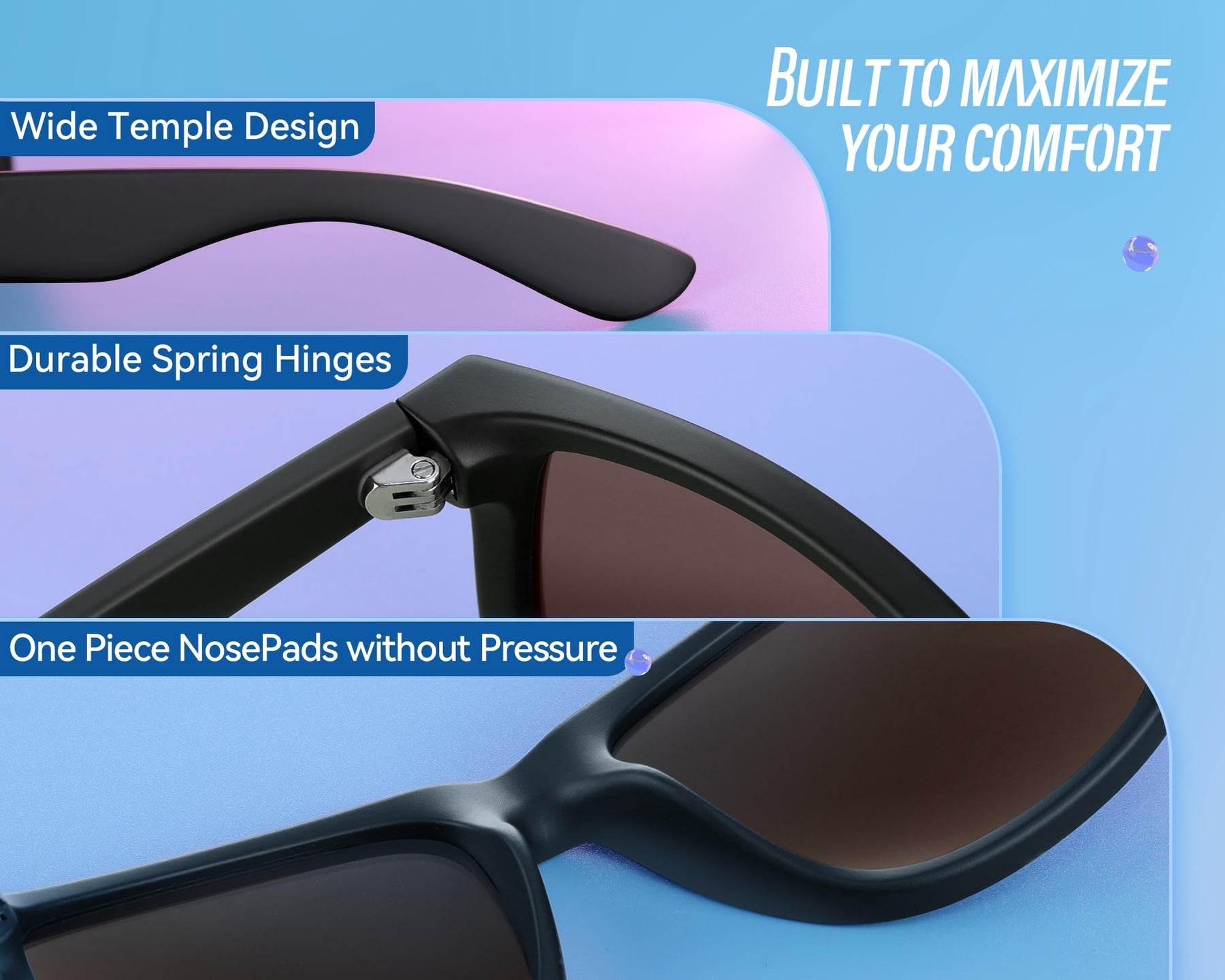 • UV400 Protection and More – Built-in UV filter blocks 100% of all UVA, UVB up to 400nm and even some of harmful blue light. Impact and scratch resistant lenses offer peace of mind; furthermore, anti-saltwater treatment allows you to fully enjoy beach hours. Reflective mirror coating (on certain models) reflects glare and serves as an extra layer to increase longevity.