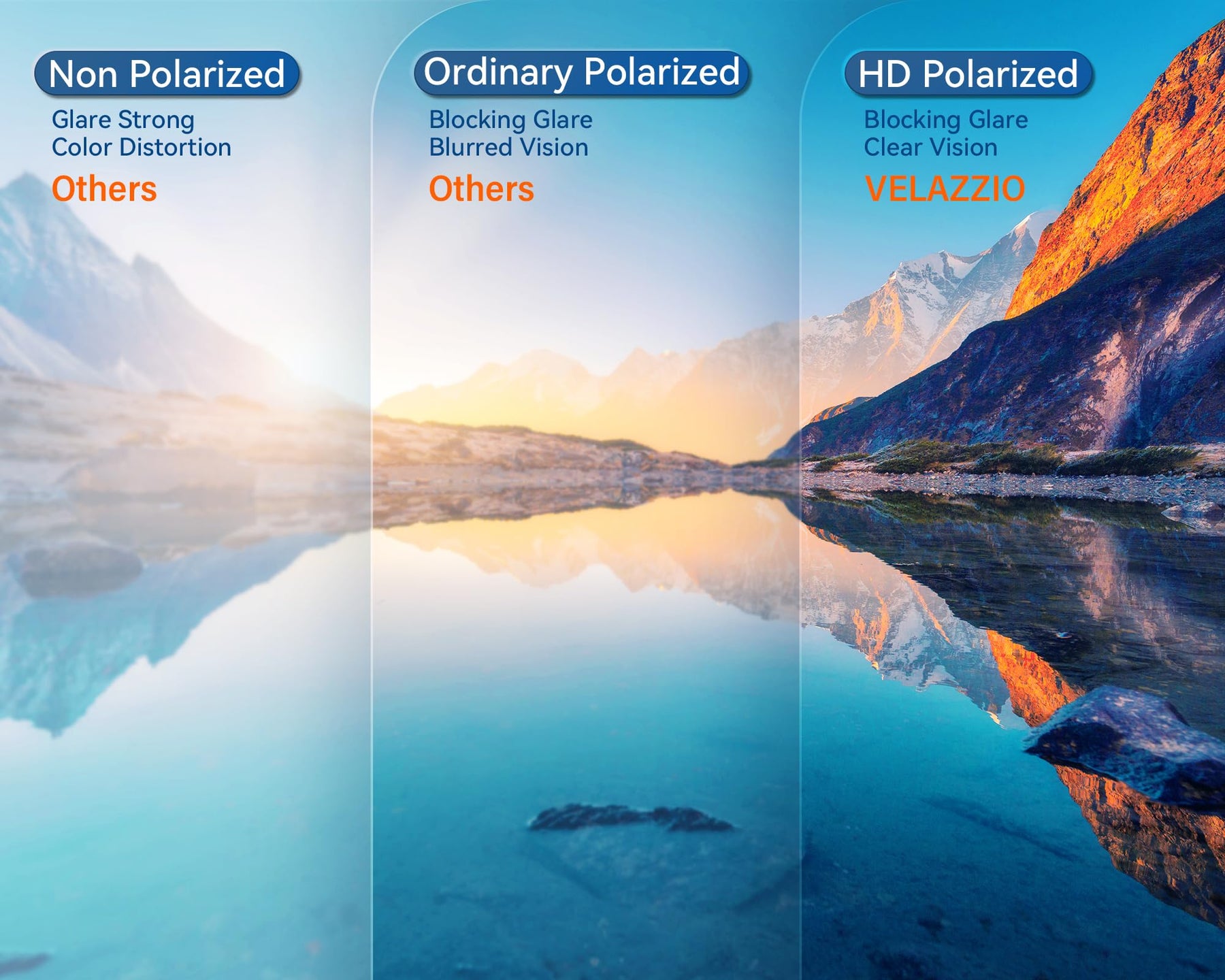 Details: HD Polarized Lens: Comparing with normal HD Polarized lens, our polarized sunglasses can filter out reflected glare without haze or optical distortion. Our polarized sunglasses provide a high clarity vision in front of you to see clearly and more comfortably. 100% UV400 Lens: VELAZZIO sunglasses can effectively blocking harmful UVA, UVB & UVC rays. They can protect your eyes when you driving, fishing, cycling or enjoy the sunshine. Comfortable to Wear: We committed to bring you the comfortable wearing experience. Ultra light one-piece nose pads makes you feel light on your face, enhancing your wearing comfort even for long time.