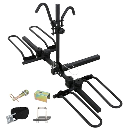 WEIZE 2 Bike Hitch Mount Rack Platform Style, Tiltable Bicycle Carrier Racks with Hitch Tightener and Strap, 90 lbs Capacity
