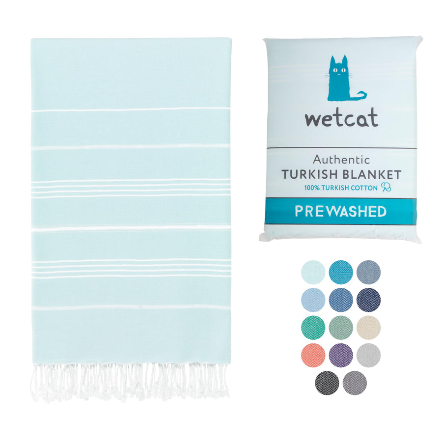 WETCAT Turkish Beach Blanket Sandproof 82x82, Soft 100% Turkish Cotton Blanket, Extra Large Sand Free Picnic Blankets & Beach Essentials – Aqua