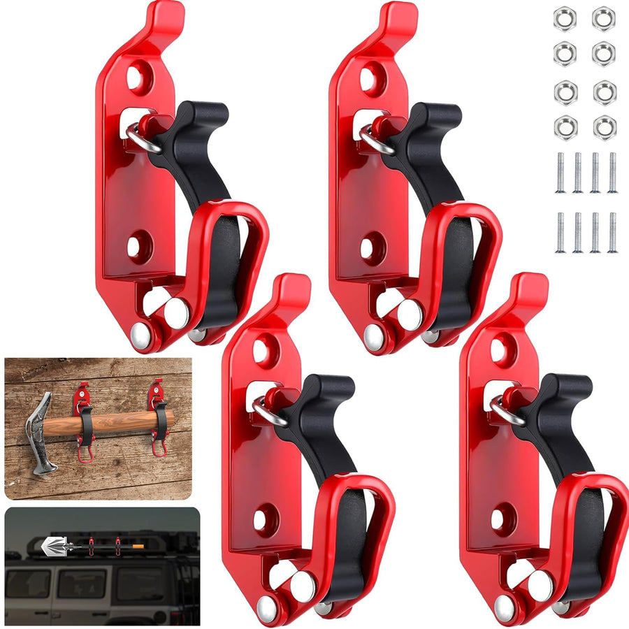 Youlvy Shovel Mount for Roof Rack, Shovel Mount for Truck Bed, Truck Jeep Offroad Roof Rack Axe Shovel Mount, Shovel Holder for Truck & Quick Fist Mount Clamps Fit 0.67" to 1.57" D Tools 4P Red