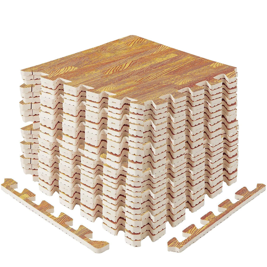 Yes4All 12,24,36 SQ.FT Wood Grain Puzzle Exercise Mat Protective Flooring, EVA Interlocking Foam Floor Tiles with Border for Home